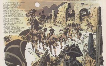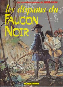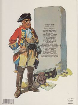 remarques: | Eric et Triple Patte acceptent de conduire Phips, le gouverneur de l'île pirate sur les traces du trésor de Barbe-Rouge et avec l'aide de Concha, Eric réussit à reprendre le contrôle du "Faucon Noir" >> p. 6 la jambe de bois de Triple-Patte qui se révèle être un coffret magique Eric abandonne Phips et son capitaine Raggen sur une barque en pleine mer, mais ceux-ci seront recueillis par le capitaine Morgan et la course au trésor continue arrivé au lieu de rendez-vous, un mystérieux message tracé par un mort laisse supposer que Barbe-Rouge s'est dirigé par voie terrestre vers la cité de Merida Eric décide de se rendre à Merida par la même voie et laisse le Faucon Noir à la garde de Concha et du lieutenant Le Goff >> p. 21 Concha est devenue la chère Conchita pour Eric sur la route de Merida, Eric sauve la vie à Maroni, chef des indios Macumba qui devient son allié, par la même occasion, Eric apprend que son père est prisonnier à Merida par les espagnols de l'inquisiteur don Scarpato, lui aussi à la recherche du trésor de Barbe-Rouge Eric décide aussitôt de délivrer Barbe-Rouge avec l'aide des indios Macumba >> p. 45 la barbe d'Eric qui commence à pousser, mais de couleur blonde >> p. 46 Barbe-Rouge = l'Attila des galions espagnols >> un scénario un peu plus faible, mais toujours encore intéressant alors que le graphisme est repris de Jijé par Gaty à la page 24 (mais sans grande différence) à noter: une jolie couverture de Pellerin, couvertures qui seront effectuées par Pellerin pour les 5 prochain albums annexes - couverture de l'album - le nouveau 4ème plat avec toutes les aventures de Barbe-Rouge (à nouveau le roi des 7 mers est par erreur en huitième position) - une vignette de bonne qualité dessinée par Gaty |