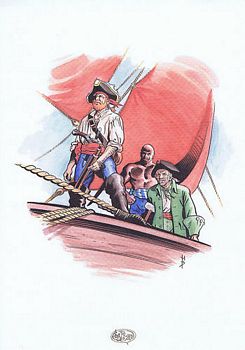 remarques: | après avoir passé le Cap Horn et s'être finalement emparé du navire d'Eric, Barbe-Rouge met le cap sur Lima, puis continue à pied via Cuzco sur le chemin de l'inca menant au Machu Picchu arrivé à destination, on doit encore se réconcilier avec le pirate Shouten qui a rejoint le Machu Picchu en premier grâce à l'aide de Triple-Patte ressuscité et grâce aux lumières du savant Alembert, on découvre le fameux trésor qui se révèle être un piège où Barbe-Rouge y perd la vie >> une histoire ennuyeuse, sans surprise et peu élaborée, idem pour le graphisme, serait-ce la fin de Barbe-Rouge? en tout cas c'est la fin de la série, les nouvelles aventures de Barbe-Rouge ne pouvant rivaliser avec celles de Charlier, Hubinon, Jijé et Pellerin n.b. mais le cycle Barbe-Rouge continue (en partie non collectionné) 1) dans la série Ollivier/Gaty avec: - pirates en mer des Indes (1991) - la fiancée du grand Moghol (1992) - la flibustière du sans-pitié (1994) - à nous la Tortue (1995) - l'or et la gloire (1996) - la guerre des pirates (1997) 2) dans la série Bourgne/Perrissin avec: - l'ombre du démon (1999) - le chemin de l'Inca (2000) - le secret d'Elisa Davis, 1ère partie (2001) - le secret d'Elisa Davis, 2ème partie (2004) = dernier album publié dans la série Barbe-Rouge 3/ une toute nouvelle série voit le jour avec Kraehn au scénario et Carloni au graphisme: - pendu haut et court (2020) - les chiens de mer (2021) - Mami Wata (2023) - chasseurs d'esclaves (2024) (non collectionnés ici) il y aura aussi une réédition sur les premières aventures de Barbe-Rouge chez Dargaud commencée en 2013, une édition 16/22 et une édition "la jeunesse de Barbe-Rouge" >> voir ce titre n.b. à noter aussi l'excellente série "l'Epervier" et "les rendez-vous de l'Epervier" par Pellerin qui reprend quelque peu une série genre Barbe-Rouge annexes - couverture et 4ème plat de l'album - portraits de Barbe-Rouge - Barbe-Rouge l'intégrale - pendu haut et court |