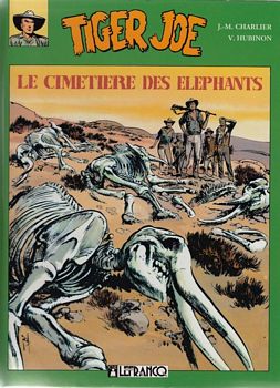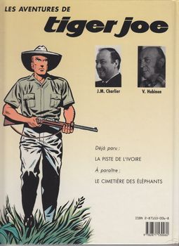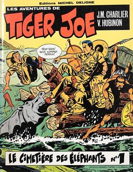 remarques: | Sheiler Keeler, fille du prospecteur Keeler disparu en Afrique, veut retrouver son père et le trésor que celui-ci lui a légué dans une lettre, Tiger Joe refusant de l'accompagner, elle s'adresse à un aventurier Slim Hunter pour la conduire aux monts bleus où d evrait se situer le cimetière des éléphants Tiger Joe se rend compte de son erreur et part avec ses deux amis Double Gin et son fidèle noir N'Mango sur les traces de l'expédition Hunter qui viennent d'être capturés par les terribles guerriers Gébélés, par ruse, Tiger Joe réussit à les libérer et à prendre le contrôle de l'expédition, mais Slim Hunter lui échappe l'expédition continue sur la piste de l'ivoire vers les monts bleus >>> page 32 la tactique de défense contre les rhinoceros >> le scenario est encore bien faible avec des épisodes comiques (Double Gin, compagnon de Tiger Joe et Monsieur Mouton, percepteur d'impôt en Europe qui veut devenir chasseur de lions), le graphisme d'Hubinon en est encore à ses débuts et va s'affermir par la suite un des premiers récits du duo Hubinon/Charlier, récit se référant beaucoup au roman "les mines du roi Salomon" n.b. les aventures de Tiger Joe furent prépubliés dans Libre Junior en 1950, un seul volume publié par Libre Belgique en 1951, puis trois albums N&B publiés en 1977 par Deligne, récits prépubliés en couleur dans Pilote dès 1964 et édités par les Lefrancq en 1988 et 1990 (trois volumes) annexes - 1er et 4ème plat Dargaud 1988 avec le titre: la piste de l'ivoire - couverture de la première édition 1951 avec le titre Tiger Joe - couverture album Deligne 1977 avec le titre: le cimetière des éléphants - couverture album Trihan 1985 avec le titre: le cimetière des éléphants - couverture album Lefrancq 1989 avec le titre: le cimetière des éléphants |