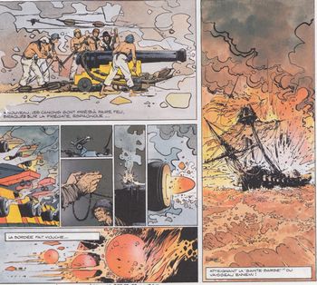 remarques: | condamné par ses supérieurs et dans l'attente de passer en jugement, Hawker, abandonné par tous, erre dans le port de Londres >> p. 4/5 les équipes d'enrôleurs de force pour les navires de guerre de sa majesté dont l'une celle du lieutenant Skull est appelé press gang après avoir sauvé la vie de la gitane Rowena qui deviendra son amie fidèle, Hawker est à son tour enrôlé de force sur le HMS "Thunder" comme serveur de canon >> p. 13 les 3 flottes anglaises en 1800: la blanche (Méditerranée), la rouge (Pacifique) et la bleue (Atlantique) >> p. 28 la plupart des hommes d'équipage ne savent pas nager >> p. 45 le supplice de la cale il y retrouvera aussi Lund, son ancien lieutenant et s'étant bien distingué lors d'un combat naval, Hawker est réhabilité à noter: une bonne description des canons de la marine à cette époque >>> un scénario plein d'action et un graphisme toujours impeccable, surtout pour le coloriage |