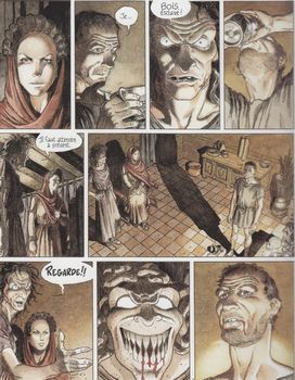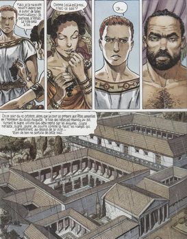 remarques: | 2ème édition début d'une série historique très bien exécutée autant pour le graphisme que pour le scénario premier tome Rome 54 A.C. gouvernée par l'empereur Claude >> p. 3/4 les jeux du cirque où Claude désire entendre le dernier râle d'un gladiateur mourant Britannicus, fils de Claude et de Messaline et son demi-frère Lucius Domitius Nero, adopté par Claude, fils d'Agrippine, seconde épouse de Claude Lollia Paulina, maîtresse de Claude et mère de Lucius Murena, sur la demande d'Agrippine, Nero devient le fils adoptif de Claude sous le nom de Tiberius Claudius Nero de la gente Claudia, Nero doit rejoindre sa mère à Rome, mais il lui préfère sa tante Domitia Lepida à la villa Ahenobarbi dans les environs de Rome >> p. 18/19 le caractère trempé d'Agrippine avec un coeur qui bat au rythme qu'elle lui impose l'esclave Acté, une androgyne, d'une grande beauté qui travaille comme prostituée pour le compte de Pallas, conseiller d'Agrippine le fils de Lollia, Lucius Murena se lie d'amitié avec Nero alors qu'Agrippine complote contre Claude avec Burrhus, chef des prétoriens; Agrippine nomme aussi Sénèque précepteur de Nero et demande à Sénèque qu'il rallie le sénat à la cause de Nero mais tout cela coûte beaucoup d'argent, d'où Agrippine tire-t-elle ces dépenses? - portrait de Locuste, surnommée la Gorgone, une empoisonneuse au service d'Agrippine Agrippine choisit le gladiateur Draxius qui devient son homme de main pour assassiner Lolia car Claude a l'intention de répudier Agrippina et d'épouser Lollia Paulina qui meurt décapitée par Draxius et à son tour, l'empereur Claude est empoisonné avec un plats de champignons (son met favori), Britannicus est écarté du pouvoir, Nero devient empereur à 17 ans mais il reste sous le contrôle provisoire d'Agrippine >> p. 48 la tête de Lolia Paulina et la mort de Claude >> un album historique exceptionnel tant par le scénario que par le graphisme et une fin plutôt sadiste citation au 4ème plat: il était d'un naturel féroce et sanguinaire qui se trahissait dans les moindres choses comme dans les grandes.. dans tous les combats de gladiateurs donnés par lui ou quelqu'un d'autre, il faisait égorger même ceux qui tombaient par hasard pour observer leur visage quand ils expiraient Suetone, Claude XXXIV Information différences entre fiction et réalité, plusieurs évènements et personnages de la série ne correspondent pas aux témoignages des contemporains et des historiens, les auteurs assument le caractère fictif de certaines scènes dans les notes en fin des tomes respectifs: le libraire Chlirfus, la course en char, la réaction de Néron et des courtisans à la lecture du poème le dieu sur le char: comme dans les tomes précédents, Dufaux pousse l’honnêteté jusqu’à informer le lecteur lorsqu’il a été obligé de transformer un peu la réalité pour des raisons techniques - le héros éponyme de la bande dessinée, Lucius Murena, patricien et fils de Lollia Paulina, est un personnage fictif, Lollia Paulina n'avait pas d'enfant - Balba, esclave gladiateur appartenant à Britannicus, puis complice de Murena, est aussi un personnage fictif - à plusieurs reprises, le dieu Mercure apparaît à Néron pour lui annoncer sa destinée, ces apparitions, non prouvées historiquement, évoquent des hallucinations pour suggérer la folie de Néron, - contrairement à ce qui est représenté dans la série, Agrippine est réputée avoir choisi Pallas comme amant; le rapport avec Burrus n'est en revanche pas documenté - Acté, délaissée par Néron, devient l'amante de Lucius Murena et décède en Gaule, or, la véritable Acté survit à Néron et organise ses funérailles - l'apôtre Pierre s'entretient à plusieurs reprises avec Néron et Murena, toutefois, il n'existe aucune trace de rencontre entre Pierre et Néron n.b. le nom du héros éponyme, Lucius Murena, est une allusion à l'album Lucius, le sourire de la murène, dont l'action se déroule sous le règne de Néron |