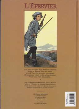 remarques: | premier volet du premier cycle, 48 pages, avec carte de la rade de Brest en page de garde 1740, Bretagne, Brest, des personnes masqués ouvrent une tombe pour s'emparer de la statue inca Tlaloc (les larmes de Tlaloc) que détenait feu marquis de Kermellec, ils sont surpris par le maître des lieux, le vieux comte Kermallec qui est abattu par les pilleurs de tombe Yann de Kermeur, alias l'Epervier de Crozon, surnommé Ar Sparfell en breton, qui avait été convoqué par le vieux comte arrive sur les lieux, mais ne peut empêcher la fuite des assassins, toutefois les serviteurs alertés prennent Kermeur pour le meurtrier et veulent le pendre d'office, Yann sera sauvé in extremis par Agnès, la petite-fille du vieux comte, qui le croit aussi coupable, mais qui veut le livrer à la justice, la maréchaussée se saisit de Yann mais celui-ci réussit à s'enfuir >> p. 15 une belle planche sur le château de Kermallec entretemps, le marquis de la Motte qui hait l'Epervier met le navire de l'Epervier "la Méduse" sous séquestre et fait arrêter son équipage, il soumet un matelot à la question et celui-ci lui révèle le repaire de l'Epervier = Roc'h an Ankou = le roc du crâne où en effet l'Epervier s'est rendu après sa fuite, le marquis de la Motte monte alors une expédition pour le surprendre >> p. 29 Cha-Ka, un indien, frère de sang de Yann de Kermeur, réussit à s'échapper lors de l'arrestation de l'équipage par la suite, on apprend que le vrai assassin est Hervé de Villeneuve, un cousin d'Agnès de Kermellec, à la recherche d'un trésor, caché en son temps par le marquis de Kermellec qui en détenait le secret dans sa tombe profanée par Villeneuve >>> premier album de la série Epervier qui n'est qu'une suite différente de la fameuse série de Barbe-Rouge dont Pellerin avait déjà produit 2 albums dans le passé après la mort de Charlier, Pellerin décida de créer sa propre série qui ressemble assez à celle de Barbe-Rouge, Yann remplaçant Eric le fils de Barbe-Rouge, Main de Fer, le second de Yann remplaçant Triple-Patte avec sa main de fer et Cha-Ka pouvant même remplacer le noir Baba >> le graphisme est très bon, Pellerin mettant surtout l'accent sur les navires d'époque et sur les expressions des personnages, un style rappelant un peu celui de Juillard, en tout cas le début de la série est bien lancé |