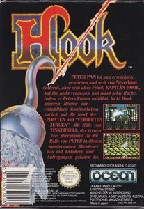 remarques: | un des premiers jeux NES/Ocean 1991 un jeu peu élaboré mais amusant et intéressant dans le pays de Neverland avec 18 levels à traverser et 2 combats à mener (Peter Pan contre Rufio et le capitaine Crochet) pas de code pour enregistrer mais on peut toujours recommencer au level choisi et on a 3 possibilités de repartir meilleure score 14,550 Information there have been several video games based on the 1991 film Hook, a side-scrolling platform game for the Nintendo Entertainment System (NES) and Game Boy was released in the United States in February 1992, subsequent side-scrolling platform games were released for the Commodore 64 and the Super Nintendo Entertainment System (SNES) later in 1992, followed by versions for the Sega CD, Sega Genesis, and Sega's handheld Game Gear console in 1993, an arcade game was also released in 1993 a graphic adventure point-and-click game, developed by Shadow Software and published by Ocean Software, was released for Amiga and Atari ST in 1992 |
