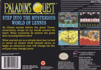 remarques: | Paladin's Quest, originally released as Lennus: memories of an ancient machine >> an interesting game, especially in respect of the graphics and music but like 7th saga abit complicate and slow-moving the game centers on a boy named Chezni who, on a dare, activates an ancient machine called Dal Gren and in doing so releases a being of immense power and evil as a result, the magic school is destroyed and the headmaster of the school orders Chezni to destroy Dal Gren at whatever cost before it destroys the world, during his travels he meets a girl named Midia, very much like himself, who wishes to help him on his quest and numerous other mercenaries that come to aid Chezni; the main antagonist is a young dictator named Zaygos, who wants to use the Dal Gren for his own nefarious purposes one of the unique things about the gameplay in Paladin's Quest is the magic system, it has several features found only in a minority of other RPGs: - there is no form of MP for the characters, instead, characters cast spells by spending their own HP, only one spell exists in the game to directly heal HP, and using it kills the caster in order to heal the rest of the party - instead of characters learning spells individually, they unlock spells by learning to wield the powers of various "spirits", of which there are eight in total (Fire, Earth, Water, Air, Sphere, Sky, Heart and Light) each individual spirit provides a single spell, every unusual pair of spirits provides an additional spell, and learning all eight unlocks an additional spell, for a total of 37 so, for example, a character who knows the "Fire", "Sphere", and "Light" spirits would know six spells: one each of the three spirits and one for each of the three spirit combinations ("Fire+Light", "Fire+Sphere" and "Sphere+Light") every spell has a unique name and effect -there is no statistic which universally enhances a character's spellcasting ability, instead, characters gain experience and power in each spirit as they cast related spells; a combination spell's power is based on both spirits it uses the game's battle mode is turn-based, in contrast to the active time battle system used by the Final Fantasy games in the same time period; from each battle, characters accrue experience points which eventually lead to higher levels, and better attributes; during battle, use of healing items usually, but not always, takes priority and occurs before the enemy can strike the player controls a party of up to four characters: up to two main characters while the rest of the party slots can be filled by mercenaries; although the player controls a mercenary's actions in battle, the player does not have any control over the equipment they wear and cannot purchase spirits for them; many mercenaries have certain strengths and weaknesses (for example, many have spirits not yet available to the player, and so have spells not yet available to the player's main characters) some mercenaries also lack a healing bottle, making them unable to do any healing in a battle, new, stronger mercenaries are available often as the player progresses through the story (usually for a price), but it is up to the player whether to continue by leveling their old mercenaries, or hiring new ones; all mercenaries can be rehired later on with the item S tavern |