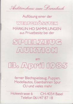 remarques: | Auktionshaus zum Dorenbach, Auflösung einer der weltgrössen Märklin HO Sammlungen Weitere Blechspielzeuge, Modellautos, etc |
