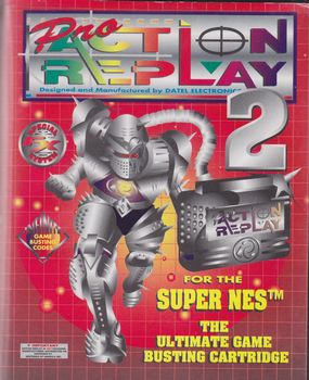 remarques: | SNES Pro Action Replay 2, the ultimate game busting cartridge giving infinite lives, unlimited energy, special effects and extra fuel/ammo-play on any level Information Action Replay is the brand name of a cheating device (such as cheat cartridges) created by Date, the Action Replay is available for many gaming systems including the Nintendo DS, Nintendo DSi, Nintendo 3DS, PlayStation Portable, PlayStation 2, GameCube, Game Boy Advance, and the Xbox typical cheating options include power-ups, level warping and display of internal game data which are not normally seen by the player, some other typical features include: infinite lives, invulnerability, permanent power-ups, no collision detection, walk through walls, one-hit kills, super-high jumps, infinite money, etc. the ability to download, upload, import and export saved games to the Internet or a storage device, allowing the player to save the game state to disk so that the game can be restarted from that point even if it does not support saving |
