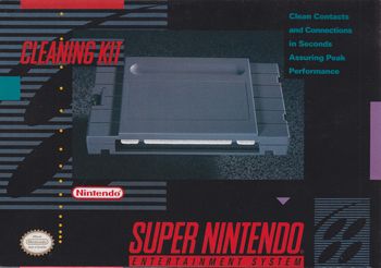 remarques: | cleaning kit for the Super Nintendo system, - clean contacts and connections in seconds assuring peak performance Information le SNES cleaning kit, sorti en 1989 par Nintendo, est un accessoire pour la Nintendo Entertainment System (NES), il contient deux outils de nettoyage en plastique et un manuel d'instruction. un élément se présente sous la forme d'une cartouche avec une poignée et permet, en effectuant des va-et-vient à l'intérieur de la console, d'en nettoyer les connecteurs internes, un élément recouvert de tissus permet de l'imprégner de produit nettoyant l'autre élément se présente sous forme d'une spatule et sert à nettoyer les cartouches, un côté assez rugueux est à imprégner de produit nettoyant et l'autre plus lisse sert à absorber l'excédent de produit. |