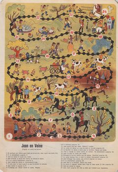 remarques: | différents jeux de société anciens (à jouer avec pions et dés): le ski, la plage, le chat botté, descente en canoë, Jean en Veine, course de montagne, à travers la forêt, la reine des neiges, le loup et les 7 cabris, Hänsel et Gretel, Cendrillon, automne campagnard, zig zag en Suisse, voyage autour du monde, résumé de jeux + jeu course automobile et jeu de l'oie |