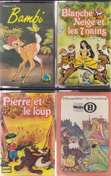 remarques: | carton D: cassettes chansons et contes enfantins a) français - divers fables et fabulettes (petit chaperon rouge, 3 petits cochons, etc) - le vilain petit canard, Titi et Sylvestre, - Hiawatha, Pinocchio, Pierre Perret: la cage aux oiseaux - Blanche-Neige et les 7 nains - Blanche-Neige + Cendrillon - Cendrillon + la belle au bois dormant - Bambi - Pierre et le Loup - le livre de la jungle - Peter Pan - les contes de Perrault - fables de la fontaine - Blanche et Gaspard (au royaume des surprises) - Blanche et Gaspard (le tour du monde) - Pit et Rik (la cicrane et la froumi) b) allemand - Rumpelstilzli und der Froschkönig - 20 super hits (da da da, ein bisschen Frieden, usw) + musique moderne - Roxetter (look sharp) - Frederic François (adios amor) |