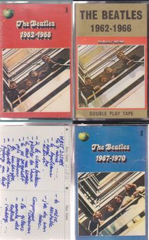 remarques: | carton A: cassettes Beatles, classique et divers a) the Beatles - Beatles 1 1962-1966, Beatles 2 1962-1966 (love me do, hard day’s night, ticket to ride, yesterday, help, nowwhere man, Michelle, yellow submarine) - Beatles 1 1967-1970, Beatles 2 1967-1970 (strawberry fields, pepper’s lonely hearts club band, penny lane, hey Jude, Lucy in the sky, come together , let it be, don’t let me down, back in the U.S.S.R.) - Beatles 1962-1966 (the best songs) 26 titles hereof: love me do, can't buy me love, a hard day's night, yesterday, help, we can work it out, drive my car, Michelle, Yellow submarine) - the Beatles (various songs), hot dogs bayerisch, Dixieland + Ragtime b) enregistrements personnels: - delivrance, showpiece for flute by James Galway, Korsakoff + musique classique - Georges Brassens, compagnons de la chanson, Tino Rossi, Bourvil, Line Renaud, Dario Moreno, etc - the shadows, Bill Haley, Rockin’ Sedaka, Elvis Presley, Ricky Nelson, - West Side story + musique classique (J.-S. Bach) - US folks music - swingle singers, Dewitte, les 4 barbus, Ray Charles, Paul Anka, Santana, the shadows, the new seekers - sabre dance, ekseption, rolling stones, blue cheer, Dutronc, Dassin, Petula Clark, Sardou, Johnny, Vartan - Mistinguett, Chevalier, Devos, Bourvil, Tino Rossi, Trenet, Fernandel, Lucienne Boyer, Baker, Sablon c) musique classique - Strauss, Ponchielli Purcell, Tchaikovsky, Ravel - Liszt, Mahler, Strauss, Rossini, Bach, Beethoven, Chopin, Verdi, Waldteufel, - Beethoven, Offenbach, Grieg, Handel, Schubert, Purcell, Verdi, Mozart, Tchaikovsky d) chansons diverses - Walt Disney (la tyrolienne, heigh ho, etc), chansons populaires + compagnons de la chanson - chants religieux (Noël, stille Nacht) + chansons populaires suisses, Ländler et Marsch |