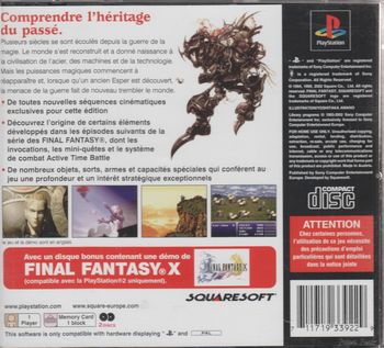 remarques: | Final Fantasy VI, one compact disc + démo jouable Final Fantasy X |