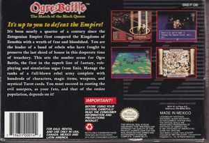 remarques: | un très long jeu RPG et le plus rare à trouver le leader doit composer plusieurs équipes pour traverser un trentaine de niveaux et affronter de nombreux ennemis tout en s'efforçant à résoudre des énigmes qui vont influencer le développement du jeu. il faut savoir équiper ses unités, les diriger stratégiquement et aussi chercher de nombreux objets cachés tout en gardant une bonne réputation pour pouvoir finir le jeu en beauté (on peut aussi jouer avec une mauvaise réputation mais la fin sera toute différente) un jeu très intéressant dans les premiers 5-6 niveaux mais qui devient quelque peu lassant par la suite bien que les combats soient toujours un peu différents N.B. il est dommage que l'on ne puisse pas sauvegarder durant un niveau qui dure - si on veut le jouer complètement - de 2 à 3 heures pour chaque niveau information a huge RPG game, in fact probably the longest ever made and a rare one, you have to pass about 30 scenes in order to finally fight the Evil Diablo, the three-headed monster. but you have not only to fight your way through, you have also to arrange your fight units according to strength and classes and also to adequacy. also you have to watch your morality during the fights: reputation and alignment as well as charism and intelligence. there are also some tarot cards that can be profitable or sometimes fatal. first recommendation: 1) build up flying units either low fly or high fly , this will give more mobility, quickness in fight and most important, it will give the possibility to eliminate enemy units that have not been completely destroyed and are retreating towards the enemy base to be renewed and start again. - also start from the beginning to build up a high reputation 2) have an opinion leader with cleric (magic = icecloud), it is quite difficult to get him at the first time (you have to replay often) 3) have many Amazons in your units in order to get clerics later on (important) 4) avoid at the beginning to occupy all the Roshfallian temples (unless they give important weapons), keep some Roshfallian temples unliberated for later use, this will enable you to receive by choice later on tarot cards such as temperance, fortune, lovers, for increasing your reputation 5) make amazons into princesses with "crown" and put them as opinion leader, they will give an extra time to attack for the whole unit GUIDE LINE FOR THE BEGINNER PLAYER first scene: Warren Castle nothing particular, 2 buried items, boss is Warren, the wizard, have the knight Lans to fight him, afterwards Warren will join the rebels but you have to liberate the 2 cities in order to fight Warren second scene: Borders of Sharom nothing difficult and particular, get Star of Hero at the Roshfallian temple in the north, 2 buried items, shop at Valna: cure and revive at Valna later on you get an undead ring against the book of dead, boss is Usar the wild-man (not difficult) third scene: Sharom district this is abit complicate if you want to get some new allies 2 buried items, exact itinerary: a) go first to Latingur (mention is made of Canupus) b) go then to Bahwal (Canopus will appear but will not fight) c) go back to Latingur (mention is made of Julia) d) go to Roshfallian temple at the left (Julia will give you the wings of victory for Canupus) e) go back to Bahwal (Canupus will now join the team) f) visit Lenikan before liberating Chang’ga to get the Moonrose sometimes Julia, the eagle-woman will join the rebels (but possibly only when Canupus not in the team) boss is Gilbert the beast-man, have Canupus fight him first, he will afterwards join the rebels N.B. it is not necessary that new allies in the scene fight the boss, but there is always a nice story to be heard fourth scene: Pogrom Forest there are alot of undead characters in this scene (it is worth to collect some, espc. ghost and skeleton for later use), 2 buried items, N.B. against undead use tactic “best” by clerics, you get also at Alagoyas a mystic staff against undead at Para, you get after stage a Silver star or Quicksilver (but only with high reputation), you will receive it also later on (but always with good reputation) boss is the mage Kapella fifth scene: Lake of Jannenia this is a scene for a fight in moonlight, one buried item, go to Roshfallian temple (bottom right), you get a rune axe (also effective against undead), otherwise nothing special boss is Sirius, the wolf-man try to fight him at midnight (the fight will be more difficult) and if one your soldiers is killed, after stage he will become a werewolf (very strong in attack and defense but only by night) sixth scene: Deneb’s Garden there is nothing special except that it is the only stage where you can get neutral pumpkins: - a rotten pumpkin will give you a good attack weapon = halloween - a glass pumpkin will give to a witch the ability of recruiting pumpkins at a city), boss is Deneb the witch, 2 options after fight with Deneb: - either you forgive Deneb, you lose reputation but you get black pearl and glass pumpkin - or you do not forgive, you receive high reputation and rotten pumpkin the best if probably not to forgive Deneb, you can anyway receive pumpkins later on the stage seventh scene: slums of Zenobia this is the first difficult stage, here your flying units will be of great value, there are alot of cities in this stage and 6 buried items get the two strong allies: beast man Lyon (for 20’000 money, 5000 after stage) and the knight Ashe before fight against general Debonnair have the two fight Debonnair for a nice story, otherwise not important warning: do not use “termites” if you do not want to have a flow of enemies running out of the castle, use only flying units N.B. have at least 80 cure and 20 revive, because battles are hard and you are still abit weak (use also undead against enemies) boss is general Debonnair , a very tough one (use fool card or moon card, moon card will bring enemy leader to the front li