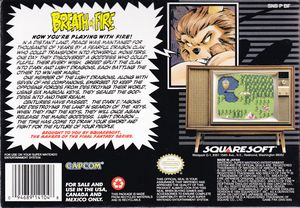remarques: | jeu us SNES 1994 100% complet avec boite d'emballage, cartouche et mode d'emploi - première version genre Final Fantasy RPG, d'assez longue durée avec plusieurs quêtes intermédiaires, - un bon dévelopement pas trop compliqué avec une bonne musique - histoire plutôt conventionnelle, il faut gérer l'équipement et résoudre des problèmes, mais quand même agréable à jouer malgré de nombreux combats parfois monotones - un membre du clan des dragons avec ses 7 compagnons qui le rejoindront au fur et à mesure du dévelopement du jeu doivent rechercher les 6 clefs de la déesse Tyr en visitant plusieurs villages et châteaux avec labyrinthes, puzzles et combats divers, - il y a surtout beaucoup de combats et plusieurs labyrinthes (mazes) parfois plutôt compliqués >> un jeu beaucoup moins élaboré que son successeur Fire Breath II, mais pas à dédaigner à noter: les nombreuses transformations pour certains caractères |