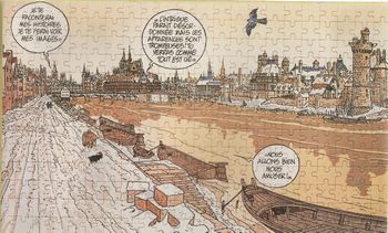 remarques: | puzzle sur un dessin de la BD: les 7 vies de l'Epervier, vue sur Paris, Notre-Dame 286 pièces, 56 x 34 cm |