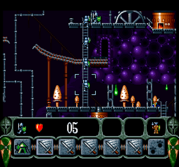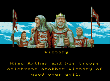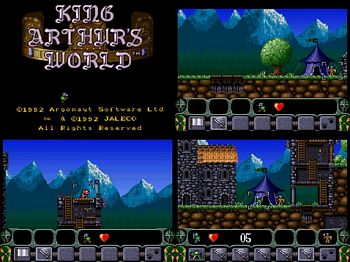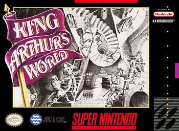 remarques: | King Arthur's World is a 1993 side-scrolling strategy video game for the Super NES, it was developed by Argonaut Games and published by Jaleco in King Arthur's World, the player controls King Arthur, at the start of each level, only the King is present and various types of troops can be brought out of the tent where he starts, the King and his troops can be commanded to move in a direction, which they do until they receive new orders, are killed or come across enemy troops, which they fight if they can, also, some troops have special commands, such as for archers to fire arrows the aim of each level is to proceed from the tent at the start to the finishing point, this may require the player to defeat various enemies, avoid traps and obstacles, King Arthur is the only essential character. If he dies, the player has failed and play can only continue, if 100 gold coins are spent to rescue him, in which case the player restarts at their tent, the game can be played with a standard controller or, alternatively, with the Super NES Mouse |