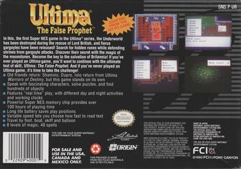 remarques: | Ultima, the false prophet the first super nes game in the Ultima series with lord British in the salvation of Britannia |