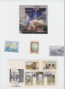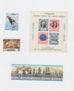 remarques: | album divisé en 3 parties 1) Amérique du Nord 2) Amérique Centrale + Antilles 3) Amérique du Sud NORTH AMERICA (voir aussi dernières pages) United States of America with Alaska/Yukon, Hawai, Puerto Rico, Midway, Guam + special old series with statesmen, secession war, air mail, Mayflower, + blocks (exploring the moon) + envelop Swissair Boston-Geneva + cover isle of Wake + envelop Cristobal/Panama canal zone + 5 dollars note + block voyage Champlain 2006/1606 >> voir album XIII Canada with New Foundland, Prince Edward, New Brunswick, Nova Scotia, Quebec, Alberta, Saskatchewan, British Columbia and Manitoba + stamps centenaire of Quebec + special series New Foundland, + block of stamps with flags of Canadian provinces ( 12) = Ontario, Quebec, Nova Scotia, Manitoba, New Brunswick, British Columbia, Prince Edward Island, Saskatchewan, Alberta, New Foundland, Yukon Territory, Northwest Territories St- Pierre-et-Miquelon (FR), Groenland >>> voir album X Mexico, various stamps, some with official (incl. block Chichen Itza) CENTRAL AMERICA Belize, ex British Honduras (UK) Costa Rica, Guatemala (with block) Honduras, Nicaragua Republic of Panama, El Salvador Belize >>> voir aussi album XIII The Antilles (Carribean) with Greater Antilles and Lesser Antilles (ex West Indies) + Leeward and Windward islands Cuba, Jamaica, Haïti, Republica Dominicana Anguilla (UK), Antigua y Barbuda Barbuda, Barbados, Grenada Redonda (near Antigua), St. Kitts St.Kitts and Nevis (UK), Saint Lucia Dominica, Trinidad, Trinidad and Tobago St. Vincent and Grenadines, St-Vincent, St. Christopher Nevis Anguilla Aruba (NL), St.Eustache (NL), Saba (NL) Curaçao (NL), Sint Maarten (NL) Saint-Martin (NL+FR), Saint-Barthélémy (FR) Martinique (FR), Guadeloupe (FR) * Bahamas (UK), Bermudes (UK), Cayman (UK) Montserrat (UK), St.Christopher (UK) St. Lucia (UK), Dominica (UK), St-Vincent (UK), UK Virgins Turks and Caicos (UK), US Virgin (St.Croix, St.John, St.Thomas)* Jamaica >>> voir aussi album XI * UK/FR/NL voir aussi possessions anglaises, françaises & néerlandaises >> voir aussi albums X et XI + Turks and Caicos+Nevis >> voir aussi album XIV Greater Antilles: Cuba, Republica Dominicana, Haiti, Jamaica + Puerto Rico Lesser Antilles: from Virgin islands to Trinidad and Tobago Leeward islands: Anguilla, Antigua, Barbuda Dominica, Guadeloupe, Montserrat St.Kitts and Nevis, St. Martin, St.Eustache St.Barthélémy, Virgin islands Windward islands: Barbados, Grenada Grenadines, Martinique, St.Lucia St. Vincent, Trinidad et Tobago Guadeloupe: Basse-Terre, Grande-Terre, les Saintes, Marie-Galante et la Désirade n.b. Cuba y Dominica >> voir fin album SOUTH AMERICA Argentina, Bolivia (avec conmemoracion ciudad de la paz 1548-1948) Brazil - Chile >> juan fernandez islands voir album XIII Colombia, Ecuador, Guyana (republic of) Guyane française*, Paraguay, Surinam Peru (with 3x covers Macchu Picchu & banknote) Uruguay, Venezuela islands: Falkland (UK)*, Tristan da Cunha (UK)* (>> voir aussi album VIII) Galapagos (Ecuador), Juan Fernandez (Chile) South Georgia and Sandwich islands (UK)* (>> voir aussi album VIII) * voir aussi possessions françaises et anglaises album X n.b. Sandwich islands = part of South Georgia islands, Sandwich islands was the name given to the Hawaiian islands by James Cook in the 1770s Sandwich Islands or Sandwich Island may also refer to: South Sandwich Islands, an archipelago, named by James Cook which is part of the British overseas territory of South Georgia and the South Sandwich Islands in the south Atlantic Ocean Annexes a) bloc USA exploring the moon and bloc of flags representing Canadian provinces b) divers (Anguilla fleet of galions, bloc Guatemala estados unidos de Norte America, etc) c) divers (bloc Bolivia commemoracion fundacion de la ciudad de La Paz, Cuba gallos de lidia, etc) d) divers (bloc Peru turismo, bloc Mexico Chichen Itza, etc) |