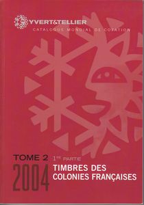remarques: | catalogue mondial de cotation, guide des timbres des colonies françaises Afar et Issas, Afrique Equatoriale Afrique Occidentale Ain-Tab (très rare) Alaouites, Alexandrette, Alexandrie Algérie, Allemagne, Anjouan Annam et Tonkin. Arad Bade, Bénin Cameroun, Canton, Castellorizo Cavalle, Chine, Cilicie Cochinchine, Comores, Congo Côte d'Ivoire, Côte des Somalis Crète Dahomey, Dédéagh, Diego-Suarez Fezzan Gabon, Ghadamès, Grande-Comore, Grand Liban, Guadeloupe, Guinée Guyane Ht-Sénégal et Niger, Haute-Volta, Hoï-Hao, Hongrie Inde, Indochine, Inini Jérusalem (très rare) Kouang-Tchéou - Lattaquié, Levant, Liban Madagascar, Majunga (très rare), Maroc, Martinique, Mauritanie Mayotte, Memel, Mohéli, Mont-Tzeu Moyen Congo Niger (territ. du), Nossi-Bé, Nlle-Calédonie, Nlles-Hébrides Obock, Océanie, Oubangui Pakhoï, Port-Lagos, Port-Saïd Réunion, Rhéno-Palatin, Rouad (île) St-Marie de Madagascar St-Pierre-et-Miquelon, Sarre Sénégal, Sénégambie et Niger Soudan, Syrie Tahiti, Tchad, Tchong-K'ing Togo, Tunisie Vathy Wallis et Futuna, Wurtemberg Yunnanfou, Zanzibar >> un catalogue très concret et bien illustré |