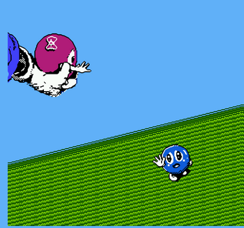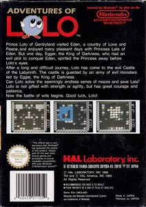 remarques: | le premier jeu de la série, il y a 10 levels avec 5 chambres chaque = 50 chambres à maîtriser, pas de combat final contre Egger, le prince des ténèbres, Lolo recevant la libération de la princesse Lala le jeu est amusant, une nouvelle forme de jeu, et pas trop difficile avec un bon graphisme et musique Information the adventures of Lolo is a puzzle video game released in 1989 by HAL Corporation for the Nintendo Entertainment System, it is based on the Japanese Eggerland video game series, it is a compilation of puzzles from previous Eggerland games and contains no original stages of its own, the player assumes the role of Lolo and attempts to rescue Princess Lala who has been kidnapped by the evil King Egger, Lolo travels to Egger's castle, with 50 rooms arranged in 10 floors of five, within each room, Lolo must collect several hearts in order to open a treasure chest and collect the gem inside, which will open the exit to the next room or floor, the player must navigate the obstacles in each room and avoid or neutralize several different types of enemies, which vary by movement and attack pattern, all enemies disappear once Lolo picks up the gem; the player can move, slide certain blocks around the screen and fire a limited number of shots at enemies, when an enemy is shot, it becomes encased in an egg for a short time; this can be pushed to a new location, used as a bridge to cross water, or shot again to make it disappear temporarily, Lolo can gain other powers on specific screens, such as the ability to smash rocks or build a bridge, some enemies are not affected by Lolo's shots one life is lost whenever Lolo is shot or touched by certain enemies, others will not kill him, but can impede his movement by standing still or freezing in place when touched, the player can restart a screen at any time, at the cost of one life it was released in North America on 20 April 1989 and in Europe in February 1991, a Nintendo representative commented that Nintendo was "trying to stretch the kids' imaginations" with Lolo adventures of Lolo was followed by two sequels for the NES: - adventures of Lolo 2 and adventures of Lolo 3 in 1990 and 1991 respectively, a Game Boy follow-up was released in 1994 with the same name (it is known in Japan as Lolo no Daibouken) |