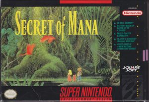 remarques: | quite an interesting video RPG game with the Mana (energy) sword, you have to find first the 8 seeds of Mana by visiting 8 palaces in the world of Mana, then you have to revive the Mana sword at the Mana tree and fight the final boss, the Mana beast the hero is accompanied from the beginning with two allies: the young Sprite the dwarf and Doris the lady warrior at your disposal, you have magic spells, weapons, armour and other useful items; to strengthen your weapons you have to find various orbs dissiminated at numerous places that have then to be presented to a blacksmith (up to 25'000 coins, level 8) >> an original RPG game, abit complicate at the beginning, quite interesting and not too difficult with some puzzles to be resolved from time to time, the only problem is that you cannot completely control all three figures at the same time information Secret of Mana, originally released in Japan as Seiken Densetsu 2 = legend of the sacred sword 2, is a 1993 action role-playing game developed and published by Square (now Square Enix) for the Super Nintendo Entertainment System. it is the sequel to the 1991 game Seiken Densetsu, released in North America as Final Fantasy Adventure and in Europe as Mystic Quest, and it was the first Seiken Densetsu title to be marketed as part of the Mana series rather than the Final Fantasy series, set in a high fantasy universe, the game follows three heroes as they attempt to prevent an empire from conquering the world with the power of an ancient flying fortress. Rather than using a turn-based battle system like contemporaneous role-playing games, secret of Mana features use real-time battles, the game has a unique ring command menu system, which pauses the action and allows the player to make decisions in the middle of battle, an innovative cooperative multiplayer system allows a second or third player to drop in and out of the game at any time. secret of Mana was directed and designed by Koichi Ishii, programmed primarily by Nasir Gebelli, and produced by veteran Square designer Hiromichi Tanaka. The game received considerable acclaim for its brightly colored graphics, expansive plot, ring command menu system, and innovative real-time battle system, critics also praised the soundtrack by Hiroki Kikuta and the customizable artificial intelligence (AI) settings for computer-controlled allies, the original version was re-released for the Wii's Virtual Console in 2008 the game was ported to mobile phones in Japan in 2009, and an enhanced port of the game was released for IOS in 2010 and Android in 2014. |