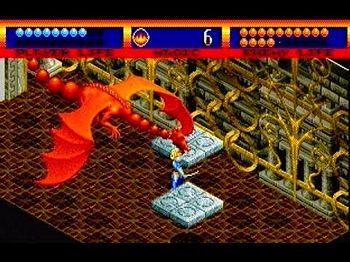 remarques: | it is similar in gameplay to Landstalker, a video-game half RPG and half action (dexterity), gameplay is viewed from an isometric viewpoint (3D perspective), the game is a mix of action, puzzle solving and platforming for the most part, music and graphic are good but you have to be accustomed with the 3D gameplay the hero of the game, sir David, will be alone on his trip during the entire game, he will have to find and fight the wizard Ragno Roke, travel during 6 levels, liberating during the trip alot of missing people being taken prisoners and finally defeating the big monster Ramiah, Roke ends up dying and the missing people come back. >> the game is rather interesting once you have been used to the 3D pointview, some puzzles mainly with balls, lazer beams, barrels, bombs and platforms together with riddle producing music and light you have to repeat are quite difficult to solve but general music and graphic are quite good |