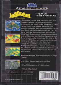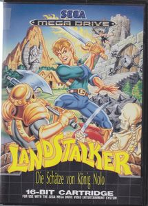 remarques: | créé à l'origine pour devenir, à l'instar de la série des Zelda de Nintendo, le jeu d'aventure phare de la console de Sega, Landstalker s'en différencie à cause de son choix de vue de trois quarts en 3D isométrique, Landstalker propose au joueur d'incarner Ryle dans une aventure mêlant action-aventure et RPG Ryle est le héros de l'histoire, c'est un elfe des forêts, un chasseur de trésors qui se bat à l'épée large, il est accompagné pour l'aider de Friday, une nymphe des forêts de l'île de Mercator (une succube), ensemble il leur faut traverser plusieurs cités et régions dont l'importante cité de Mercator, la Tour de Mir, deux grands labyrinthes, la mine de Verla la caverne de Destel et enfin le grand labyrinthe du roi Nolo dû au caractère 3D du jeu, il est parfois très diffice d'atteindre les buts fixés surtout dans quelques passages mais le jeu reste correcte et surtout présente un joli graphique |