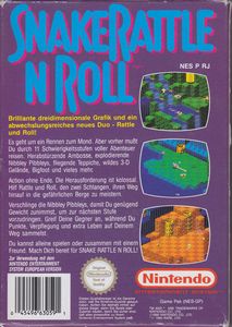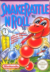 remarques: | Snake Rattle 'n' Roll est un jeu vidéo de plates-formes, développé par Rare et édité par Nintendo (1990) le jeu met en scène deux serpents, Rattle et Roll, dans des niveaux en 3D isométrique; Snake Rattle 'n' Roll a été développé par deux membres de Rare: Tim Stamper et Mark Betteridge et la musique a été composée par David Wise, il a été bien reçu par la presse spécialisée, qui l'a salué pour ses graphismes en 3D, sa jouabilité et son niveau de difficulté, une suite du nom de Snake "n" Space devait sortir mais n'a jamais vu le jour, cependant il fut tout de même suivi par Sneaky Snakes sur Game Boy en 1991, Snake Rattle 'n' Roll a été désigné comme l'un des meilleurs jeux sortis sur NES ainsi que comme l'un des meilleurs jeux développés par Rare. le joueur dirige un serpent qui doit prendre du poids en mangeant des billes colorées à l'aide de sa langue; une fois arrivé en fin de la zone, le joueur doit se placer sur une balance, si une sonnette retentit, le poids est suffisant et la porte du niveau suivant s'ouvre, les points sont ensuite comptabilisés à la fin de la partie suivante selon le nombre de billes avalées, si elles sont de la couleur du serpent, le joueur gagne plus de points, le joueur perd des billes en se faisant toucher par un ennemi, pour détruire les monstres, il suffit de leur donner des coups de langue ou de sauter dessus; le joueur perd une vie dans les cas suivant : - en entrant en collision avec un ennemi alors qu'il n'a plus de bille - en se faisant écraser par un pied géant - en tombant dans le vide ou sur des pics - en dépassant la limite de temps des bouches d'égouts jalonnent le niveau, elles cachent soit des billes supplémentaires, un bonus, un niveau bonus, un ennemi ou une warp zone, les différents bonus du jeu permettent entre autres d'agrandir la langue du serpent, d'ajouter du temps supplémentaire ou de gagner une vie, des malus sont aussi présents, il s'agit de fausses vies supplémentaires qui explosent, un système qui inverse le sens de vos commandes ou bien un malus qui limite la hauteur de vos sauts >> un des rare jeux du Nes qui présente un développement en 3D isométrique, ces jeux restant surtout l'apanage de Sega; c'est à nouveau un jeu mélangé de shoot-up avec du jump-up, demandant aussi pas mal d'adresse et de patience, la difficulté étant augmentée par le niveau en 3D isométrique et toujours pas de sauvegarde |