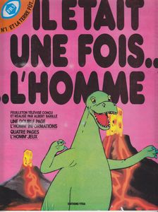 remarques: | premier épisode d'un feuilleton télévisé "il était une fois .. l'homme..." conçu et réalisé par Albert Barillé pour France 3, journal de 32 pages couleur dont le no 1 "et la terre fût" histoire de la Terre depuis une boule de feu, création de la mer d'où est sortie la vie avec la première cellule vivante, puis ce sera différentes formes de vie, ensuite le premier animal: le poisson, suivi par sélection naturelle des reptiles dont les dinosaures (= reptiles terribles) avec le plus grand animal qui ait jamais existé: le brachiosaure, un poid lourd de 50 tonnes), vint les mammifères, les primates et enfin l'ancêtre de l'homme: le pithécanthrope avec un cerveau de 950 cm3 (en comparaison celui de l'homme moderne est de 1500 cms) >> un magazine intéressant de par la méthode utilisée pour montrer le développement de l'homme à travers les siècles sous forme d'épisodes télévisés, il y aura 25 épisodes: no 2 l'homme de Néanderthal, 3 le Cro-Magnon, 4 les vallées fertiles, 5 les premiers empires, 6 le siècle de Périclès, 7 pax romana, 8 la conquête de l'Islam, 9 les Carolingiens, 10 l'âge des vikings, 11/ les bâtisseurs de cathédrales, 12 Marco Polo, 13 la guerre de Cent Ans, 14 le Quattrocento, 15 le siècle d'or espagnol, 16 l'Angleterre d'Elisabeth, 17 l'âge d'or des Provinces Unies, 18 le grand siècle de Louis XIV, 19 Pierre le Grand et son époque, 20 le siècle des lumières, 21 l'Amérique, 22 la Révolution Française, 23 le printemps des peuples, 24 la Belle Epoque 1900-1914, 25 les années folles, 26 il était une fois ... la terre (et demain?) n.b. seul le numéro 1 est collectionné ici à titre d'exemplaire représentatif |