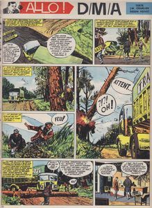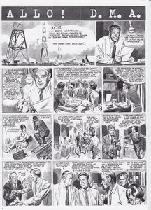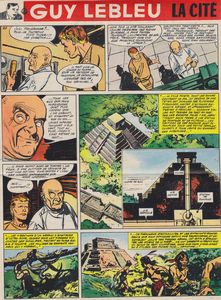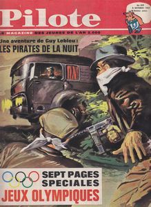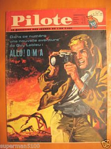 remarques: | séries parues dans le Journal Pilote les aventures de Guy Lebleu créées par le tandem Poïvet-Charlier >>> voir aussi sous albums 1) allo D.M.A. premier épisode de Guy Lebleu première apparition dans Pilote no 105 (26.10.1961) au no 134 (17.5.1962) = 31 planches couleur; paru en album éditions Sangam 2012 et Ratier 2020 2) allo D.M.A. deuxième épisode de Guy Lebleu no 139 (21.6.1962) au no 239 (21.5.1964) = 103 planches parues en couleur dans Pilote et en album Glénat 1976 sous le titre "le rayon de la mort" mais uniquement en N&B + allo DMA tome 2 édition Fordis 2022 3) les pirates de la nuit, 3ème épisode dans Pilote no 259 (8.10.1964) au no 286 (15.4.1965) = 56 planches couleur n.b. il aurait paru en 2017 un album broché édition Fordis de cet épisode mais en quadrichromie (assez bonne couleur) 4) trois épisodes de Guy Lebleu parus dans Pilote a) organisation XXX b) mort en tout genre c) la cité secrète de la mort du no 289 (6.5.1965) au no 336 (31.3.1966) = 90 planches couleur édités en album par Glénat (1976) sous le titre "la cité de la mort", mais uniquement en noir&blanc + édition Fordis 2019 5) 15 milliards de diamants dans Pilote du no 352 (21.7.1966) au no 389 (6.4.1967) = 74 planches couleur non parues en album n.b. il aurait aussi paru en 2018 un album édition Fordis en couleur en outre, plusieurs épisodes ont paru sous forme d'albums pirate (les pirates de la presse) ces aventures de Guy Lebleu ont eu un véritable succès grâce au graphisme dynamique de Poïvet, mais surtout grâce aux scénarios très bien imaginés de Charlier Annexes - couverture journal Pilote no 105 (1961) premier épisode allo D.M.A. - extrait de Pilote premier épisode allo D.M.A. - extrait de Pilote couleur les pirates de la nuit - couverture de Pilote no 259 (1964) les pirates de la nuit - extrait de Pilote couleur la cité de la mort - extrait de Pilote N&B 15 milliards de diamants |