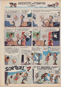 remarques: | dossier 464G les aventures de Modeste et Pompon, en partie rééditées en albums (extraits du Journal Tintin) par André Franquin (1955-1959), puis repris par différents dessinateurs dont Attanasio (1959-1968), Mittéï (1969-1975) et aussi par Griffo et Walli (1.8.2020) ouvrages parus en albums: - 2 albums par Franquin, Lombard, 1958 et 1959, couleur - 1 album à l'italienne, par Attanasio, Dargaud, 1964, couleur - 1 album gag divers, par Franquin, Dargaud, 1973, couleur - 6 albums par Mittéï, édition Horus, 1979, N&B - 5 albums par Attanasio, Magic Strip, 1980, couleur - 5 albums par Walli, Lombard, 1985-1987, couleur - 8 albums R1-R8, par Franquin, édition Himalaya, 1988-1993, couleur (seule édition à la fois intégrale et chronologique) - 4 albums par Attanasio, édition Loup, 1999-2001, couleur - 2 albums par Attanasio, édition Hibou, 2005, couleur - 4 albums par Franquin, Hachette, 2015, couleur - 2 albums par Dupont, édition pirate, 2015, couleur contenu du dossier 464 G sur Modeste et Pompon: - premiers épisodes, par Franquin, bande jaune, Journal Tintin 1955-1956 - épisodes par Franquin avec bande rouge au titre - épisodes avec les 3 neveux et Félix, cousin de Modeste, au titre - épisodes signés Franquin - épisodes signés Attanasio - épisode signé Globul - couverture album Attanasio 1964 - couverture album Mitteï 1979 - couverture album Walli 1985 - couverture édition Himalaya 1988 - couverture édition Hachette 2015 |