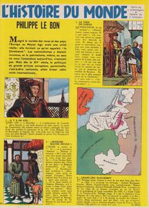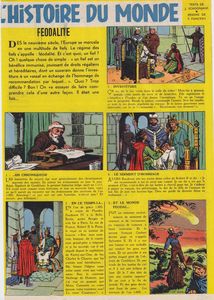remarques: | séries inédites, en partie éditée en albums par F&L. Funcken et J. Schoonjans (extraits du Journal Tintin) >>> enregistré sous Histoire du Monde/albums une fresque monumentale de l'Histoire du Monde en bande dessinée sur 326 planches dont l'intégrale ne parue que dans le Journal de Tintin édition belge nos 371 à 538 = 168 planches pour l'édition du Journal Tintin français édités sous forme de vignettes avec texte sous la vignette détail aux numéros - nos 371 à 377 = 7 planches sur l'Egypte - nos 378 à 382 = 5 planches sur l'Assyrie - nos 383 à 384 = 2 planches sur les Hébreux - nos 385 à 386 = 2 planches sur les Phéniciens - nos 387 à 388 = 2 planches sur les Perses - nos 389 à 403 = 15 planches sur la Grèce - nos 404 à 442 = 39 planches sur Rome - nos 443 à 447 = 5 planches sur les invasions barbares - nos 448 à 450 = 3 planches sur Byzance - nos 451 à 452 = 2 planches sur l'Islam - nos 453 à 459 = 7 planches sur les Mérovingiens - nos 460 à 473 = 14 planches sur le Bas Moyen-Age - nos 474 à 505 = 32 planches sur le Haut Moyen-Age - nos 506 à 538 = 33 planches sur la Renaissance N.B. les nos 371 à 459 sont en noir&blanc/lavis, dès le 460 les planches sont en couleur - les planches 102 à 107 (507-512) et 114 à 117 (514-517) = 10 planches n'ont pas paru dans la version française et dès le no 539, l'Histoire du Monde n'a plus été continuée dans la version française suite de l'Histoire du Monde édition belge: - 6 planches sur la Réforme - 6 planches sur les grandes découvertes - 19 planches sur François Ier, Charles-Quint, les Pays-Bas, l'Angleterre d'Elizabeth Ière et Mary Stuart, les guerre des religion, les trois Henri, la littérature de la Renaissance, le Kremlin n.b. les planches 137 à 167 sont encore en couleur, à partir de 168 à 237 de nouveau en noir&blanc et depuis 238 jusqu'à la fin en couleur - 18 planches sur Henri IV, la Suède, Richelieu, Louis XIII, guerre de 30 ans, Mazarin, l'Angleterre de Charles Ier et Cromwell, - 19 planches sur le Roi-soleil, le Grand siècle, la succession d'Espagne, la Prusse, Russie et Pologne, Louis XV - 23 planches sur le siècle des lumières, Marie-Thérèse et Frédéric II, l'Angleterre, la guerre de sept ans, les grands voyages (l'Amérique, les Indes), Catherine II, la Pologne, la naissance des Etats-Unis, Mozart - 30 planches sur Louis XVI ou la fin d'un monde, les Etats Généraux, la Constituante, la Constitution, la Législative, la Convention, la République, la Terreur, Robespierre, le Directoire, Bonaparte, le Consulat, l'Empire, Napoleon, la chute de l'Aigle, Talleyrand, le traité de Vienne, la Sainte-Alliance - 28 planches sur la révolution de Juillet, Bruxelles, le romantisme, Louis-Philippe, Napoleon III, l'unité italienne, l'unité allemande, la guerre franco-allemande, rule Britannia, la reine Victoria, le socialisme, la Triplice, les grandes conquêtes, Stanley, le colonialisme, Alexandre III de Russie, l'entente franco-britannique, la guerre russo-japonaise - 38 pages sur la guerre des Balkans, les auteurs, les musiciens, les artistes, les inventeurs, les savants, la guerre 14-18, la révolution russe, la paix de Versailles, la Société des Nations, le fascisme, le nazisme, le IIIème Reich, l'impérialisme nippon, Staline, la guerre civile d'Espagne, la guerre 39-45, l'Europe, l'Etoile rouge, le croissant musulman, le monde libre, au revoir à la planche 326 une fresque magistrale! n.b. en albums, il y eut les éditions suivantes: - l'histoire du monde tome 1 de l'Egypte à Alexandre le Grand, Lombard (1958) - l'histoire du monde tome 2 de la naissance de Rome à Alexandre-Sévère, Lombard (1960) - l'histoire du monde tome 3 du Haut Moyen-Age au royaume de Jérusalem, Lombard (sd, 1960) + la grande histoire du monde contée et illustré par Fred et Liliane Funcken, édition Blancocktail (1992) de la préhistoire à l'époque contemporaine (mais qui n'a plus rien à voir avec l'histoire du monde en 326 planches parue dans le Journal Tintin) Annexes - extrait Journal Tintin, première planche de l'histoire du monde - extrait Journal Tintin, la féodalité - extrait Journal Tintin, la Bourgogne - extrait Journal Tintin, Henri IV - extrait Journal Tintin, la Terreur - extrait Journal Tintin, la dernière planche |