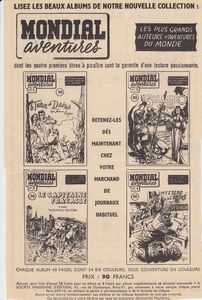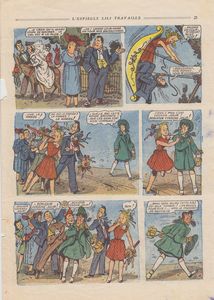 remarques: | dossier 464F y inclus Fa et Fb fascicules SPE Jeunesse, classé carton 8 >>> voir aussi RC (récits complets) - Aggie no 1 EO (1950) by Hal Rasmussen aux éditions SPE - Bibi Fricotin, 46 fascicules, nos 1 à 36 EO + divers numéros (1950 à 1988) aux éditions SPE, dessinés par Louis Forton, puis par Callaud et Lacroix - Charlot no 5 EO (1927) dessiné par R. Thommen aux éditions SPE - Lili l’espiègle, 6 fascicules dont le no 7 EO "Lili travaille" (1952) = premier numéro à images complètes, (les fascicules précédents avaient un texte sous image), dessiné par AL.G. aux éditions SPE - Miki no 1 EO (1950) dessiné par AL.G. aux éditions SPE - Oscar le petit canard nos 1 à 19 EO (1947-1963), série complète, dessinée par MAT aux éditions SPE - les Pieds Nickelés, 11 fascicules divers, en partie EO, (1952-1970), dessinés par Louis Forton, puis par Pellos (3 nos 21-22-23- dessinés par Lacroix) aux éditions SPE - Tétarzan, fascicule unique (1952) dessiné par MAT aux éditions SPE - divers fascicules Jeunesse: - Bichou et Cie by Saint-Ogan - le soldat Lariflette by Laborne, - les aventures de Bamboula by Mat, - les curieuses aventures du chevalier d’Escarbignac by Joë Hamman, - Dédé le petit pélican by Durst - Francette et Riquet et autres - Mondial Aventures, nos 1 à 30 (1954-1959) par divers dessinateurs dont Giffey, Pellos et Novi, série complète, aux éditions SPE - Classiques Illustrés, divers fascicules (1957-1959), nombreux dessinateurs, aux éditions Williams (y compris 4 fascicules Classics Illustrated édition anglaise) - Cinématique, 22 fascicules (1920-1937) par de nombreux dessinateurs (dont les plus connus : Catalany, Colomban, Duverne et Pujo) aux éditions Bayard/Bonne Presse Annexes - extrait de Bibi Fricotin by Louis Forton édition SPE - extrait d'Oscar le petit canard by Mat édition SPE - extrait de Lili l'espiègle by Al.G. édition SPE - extrait de Tétarzan by Mat édition SPE - illustration sur la série Mondial Aventures édition SPE - extrait d'un fascicule Cinématique édition Bonne Presse Information Alexandre Gérard, dit Al. G. (1914-1974) est un auteur de bande dessinée et illustrateur français, il est surtout connu pour avoir dessiné la série jeunesse L'Espiègle Lili de 1944 à 1974 |