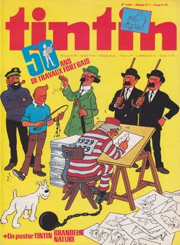 remarques: | E) le journal des jeunes de 7 à 77 ans - la collection Lombard F) bibliographie - histoire et création du Journal Tintin - les dessinateurs - couvertures et extraits du Journal Tintin - liste des séries parues 1948-1972 - les reliures du Journal Tintin - couverture de la reliure no 1 - regroupement des fascicules en albums reliés - résumé des reliures nos 1 à 6 - ouvrages d’étude sur le Journal Tintin: - histoire du Journal Tintin by A. Lerman (Glénat 1979) - 35 ans du Journal Tintin (Lombard 1981) - 40 ans du Journal Tintin (Lombard 1986) - agenda du Journal Rintin 1984 - résumé ouvrages d'étude Journal Tintin ST) couvertures et extraits du Journal Tintin - no 16 (1949) les Dupond-Dupont - no 60 (1949) Hergé a disparu - couvertures Tintin 1948-1949 - couvertures Tintin 1950-1953 - no 187 (1952) couverture de - divers couvertures et extraits objectif lune et on a marché sur la lune - calendriers 1958-1961, jeu de l’oie - diverses couvertures joyeux Noël: 374 (1955), 424 (1956), 479 (1957), 530 (1958), belge 50 (1959) - diverses couvertures joyeuses Pâques: 388 (1956), 443 (1957) , 493 (1958) - divers extraits (dont affaire Tournesol) - romans dans Journal + Tintin Actualités - la page Citroën nos 1 à 12 + divers articles - couvertures Spécial Auto: 361 (1955), 400+416 (1956), 444+468 (1957) - doc. sur rail et route (rallyes de Monte Carlo et Laponie-Le Cap) - Tintin automobile, le jeu Vespa-route - journal Tintin no 862 (1965) l’île noire redessinée + hallo.. ici Hergé - no 40 (28.9.1976), spécial 30 ans (1946-1976) - no 171 (4ème trim. 1978), avec timbre Tintin, 50ème anniversaire (1929-1979) - no 174 (5.1.1979), 50 ans de travaux fort gais - no 39/316 (25.9.1981), spécial 35 ans (1946-1981) |