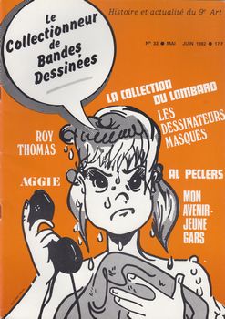 remarques: | numéro 33 de mai/juin 1982 - la collection Lombard, 2ème partie - Roy Thomas, 2ème partie - à la recherche des dessinateurs masqués, leurs logos particuliers, tel celui de Pellos - deux illustrés de la jeunesse ouvrière: mon avenir, jeune gars et radar - portrait de Al Peclers |