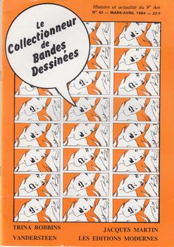 remarques: | numéro 42 de mars-avril 1984 - Underground IV: Triny Robbins, 2ème partie (Lucky Lady, Feline liberation, peau blanche) - un illustré vandersteenien: Franc Jeu (Floche et Flache, Bill et Sam) - le triomphe de Jacques Martin avec Alix, souvenirs de jeunesse - les Editions Modernes 1/ l'avant-guerre (les nouveaux buffalos, images amusantes, etc) 2/ l'après-guerre (les grands détectives, le roi de la brousse) |