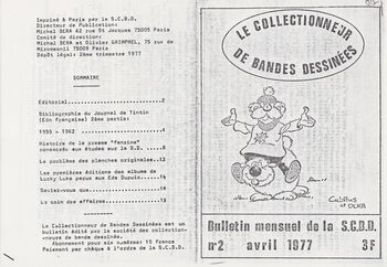remarques: | numéro 2 d'avril 1977 (photocopie) - bibliographie du journal Tintin, 2ème partie 1955-1962 - histoire de la presse fanzine - le problème des planches originales - les premières éditions des albums Lucky Luke (Dupuis) |