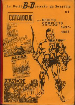 remarques: | Le Petit Bédéraste du 20ème siècle tome 1 des récits complets de 1937 à 1957, série de 9 tomes (1980 à 1985?) publiée par Norbert Moutier, c'était une revue pionnière, bourrée d'érudition, la série comprend un tome no 11 supplémentaire, additif au no 5 mais en couleur: le monde hallucinant de Fantax n.b. seuls les cinq premiers tomes sont collectionnés ici curieusement ni ces fascicules ni Norbert Moutier ne sont mentionnés dans la Bedetheque contenu: - Artima: format à l'italienne et format moyen - Sagedition: Heroïc, Petit Shériff, Sciuscia - Editions de Lyon: Chott, Impéria, Lug, Sprint - Editions Mondiales, Elan et SEG - Editions SNPI, Remparts et Modernes - Editions SAETL: Pic Nic - Edition de Nice et Ray-Flo - divers: cahiers d'Ulysse, Odyssées, Sélections Prouesse, Petit Riquet, etc >> peut'être pas vraiment complet mais déjà bien détaillé >>> bédéraste = homme qui a de l'attrait pour les bandes dessinées, par opposition à pédéraste = qui a de l'attrait pour les jeunes garçons |