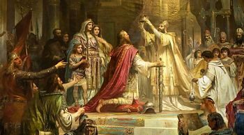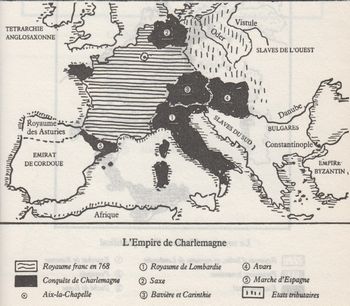 remarques: | Charlemagne, empereur et roi, dans la collection les rois qui ont fait la France première partie: les premiers pas 768-772 (la jeunesse de Charlemagne) 1/ le lignage de Charlemagne Pépin le Bref, père de Charlemagne et Charles Martel, son grand-père; conflit entre austrasiens et neustriens Charles Martel réussit le coup de force de stopper l'avance des arabes à Poitiers (732) et après coup, il réunira le regum francorum 2/ le règne glorieux de Pépin le Bref à sa mort, ses fils se partagent le royaume à Carloman, l'aîné revient l'Austrasie, l'Alémanie et la Thuringe à Pépin Neustrie, Burgondie et Provence, toutefois ceux-ci ne sont que maires du palais (= vice-rois), ils firent reconnaître comme roi-substitut: Childeric III, dernier roi de la dynastie des mérovingiens par la suite, Carloman entre dans les ordres et Pépin en 751 dépose Childéric III et se fait sacrer roi à Soissons par l'archevêque Boniface de Mayence en prenant le titre de Pépin le Bref, mais non seulement couronné roi, son sacre avec l'onction consécrera aux futurs rois des francs le caractère quasi-divin de leur fonction Pépin substituera sa race à celle des mérovingiens, de par son alliance avec le pape Etienne III, Pépin le Bref devient le protecteur de l'Eglise et il en profite pour fonder une nouvelle dynastie, celle des carolingiens première campagne contre les lombards pour protéger le pape, il agrandira son royaume en annexant l'Aquitaine, en s'emparant de la Septimanie contre les arabes et en élargissant le royaume contre les saxons (Saxe et Thuringe) >> p. 36 il semble probable que Pépin fut de petite taille d'où son sobriquet de Pépin le Bref à noter aussi p. 36 les histoires de Notker, moine de Saint-Gall (voir p. 311) 3/ Charles et Carloman Charles, le futur Charlemagne prit son père comme modèl, à la mort de Pépin le Bref en 768, le royaume, selon la tradition, est divisé de façon curieuse entre ses deux fils: ceux de Charlemagne forment un arc occidental de la Garonne au Rhin, ceux de Carloman sont regroupés autour de l’Alémanie; l’Austrasie, la Neustrie et l’Aquitaine sont partagées entre eux 4/ la tutelle de Bertrade la reine Bertrade, leur mère, appelée aussi Berthe aux grands pieds tenta d'influencer ses fils et prit position pour Carloman, quelque peu jaloux de Charles à la mort prématurée de Carloman, Charles hérite de la totalité du royaume et se détache complètement de l'influence de Bertrade n.b. l'histoire de Désirée, princesse lombarde, fille de Didier de Lombardie mariée à Charles, puis répudiée et à la mort de Carloman, sa femme Gerberge, fille de Didier de Lombardie et ses deux fils se réfugient alors en Lombardie, devenue quelque peu hostile à Charles et dont le roi Didier essayera de rétablir sur le trône les fils de Carloman (sans succès) deuxième partie: la marche vers l'Empire (773-799) 1/ la couronne de fer longanime = d'une patience tolérante en 773, appelé à nouveau par le pape Adrien Ier, Charles envahit la Lombardie malgré les cluses = passages bien défendus, le roi Didier est battu et exilé en Picardie, Charles devient roi de Lombardie; en 774, les possessions du pape deviennent un véritable état la campagne de LOmbardie à peine terminée, celle de Saxe commence, elle durera 33 ans 2/ l'Irminsul la guerre en Saxe deviendra une genre de croisade, >> p. 61 le territoire saxon bordait la Thuringe, la Hesse et la Rhénanie, il s'étendait de la mer du Nord au massif de Harz quatre peuples principaux composaient la population: - les Nordalbingiens dans la région de l'Elbe avec les slaves comme voisins - les Westphaliens à l'ouest, voisins des Frisons et des Rhénans - les Angrariens au centre, voisins des Hessois - les Ostphaliens au sud-est voisins des Thuringiens ces peuples avaient la même organisation sociale, la même langue et le même culte, ils étaient complètement autonomes >> p. 62 le sanctuaire paîen appelé l'Irminsul, dieu de la guerre durant sa campagne, Charles détruisit le château d'Eresbourg où s'élevait l'Irminsul; la guerre contre les saxons fut plus religieuse que politique, le pape envoya de nombreux missionnaires, pas toujours bien acceptés en 772, la Saxe fut soumise sauf un certain chef nommé Widukind qui continua une sorte de guérilla, mais entretemps, Charles était devenu le premier chef de guerre de son temps 3/ le col de Roncevaux (778) échec de Charlemagne en Espagne pour défendre l'unique petit royaume chrétien des Asturies, Charlemagne quitte l'Espagne à la suite de nouvelles rebellions en Saxe et ce ne sera que 30 ans plus tard que Charlemagne retournera en Espagne pour y établir cette fois une ligne fortifiée le long des Pyrénées qui sera appelée les Marches d'Espagne 4/ Widukind Charlemagne réprime à nouveau les dissidents saxons et parvient à vaincre Widukind en le comblant de présents, Widukind se laissera même baptiser comme chrétien, dès lors Widukind ne fit plus parler de lui 5/ Pépin d'Italie Pépin, le fils de Charles est couronné roi de Lombardie avec son conseiller Adalhard, mais en fait Charles reste le gérant de la Lombardie, conquête du duché de Benevent dirigé par Arichis et l'Italie y compris les états du pape était maintenant soumise à Charlemagne 6/ Louis d'Aquitaine l'Aquitaine, une marche de défense contre les incursions arabes, Charles nomme son deuxième fils Louis roi d'Aquitaine (il deviendra Louis le Pieux) qui englobait la Gascogne et la Septimanie (environs de Narbonne), en 796 conquête de la Navarre, à cette occasion la marche de Bretagne peuplée par les celtes fut aussi pacifiée 7/ Tassilon de Bavière un état aussi évolué que la Francie qui était en théorie assujetti au royaume franc, pour gagner son indépendance, Tassilon duc de Bavière, entama des négotiations secrètes avec ls Avars (genre de huns), Charlemagne dut intervenir et obligea Tassilon à abdiquer et la Bavière fut