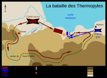 remarques: | English books the history of Herodotus in 2 volumes hardcover, without jacket, volume one: first to fourth books volume two: fifth to ninth books translated by George Rawlinson >> voir aussi histoire (Antiquité) Herodote 2 volumes édition Bonnot the battle of the Thermopylae (hot gates) is described in volume two, seventh book, pages 116 to 214 n.b. vide supra (in commentaries) refer to previous text whereas vide infra refers to following text (in these two books) - death of Darius, Xerxes on the throne, unlike Cyrus who was a great soldier and Darius a great statesman, Xerxes was as a ruler arbitrary and unscrupulous, as a man effeminate, extravagant and cruel - the passage of the Hellespont - >> p. 144 according to Herodotus, Xerxes' army amounted to 1,7 millions, the manner how the soldiers were numbered - >> p. 145 composition of the army by nations: the Persians, Medes, Cissians, Hyrcanians, Assyrians, Bactrians, Scyths, Indians, Arians, Parthians, Caspians, Utians, Arabians, Ethiopians, Libyans, Egyptians, Paphlagonians, Phrygians, Armenians, Mysians, Lydians, Thracians, etc >> p. 151 the whole of the infantry were commanded by various generals excepting the Ten Thousand, they were all persians and called the Immortals because when one failed or dead, his place was immediately filled up by another so that their number was at no time either greater or less than 10'000 >> p. 153 composition of the fleet with 1200 triremes, the Phoenicians being the best sailors in the fleet >> p. 152 the horses could not endure the sight and smell of the camels >> p. 155 mention of Artemisia, queen of Halicarnassus, native place of Herodotus >> p. 157 Xerxes questions Demaratus, king of sparta in exile - Xerxes's army enters Thessaly >> p. 168 the heralds sent by Xerxes to Athens and Sparta were put to death breaking therefore the laws for ambassadors - p. 173 according to the prophecy of the pythoness of Delphi, the invasion of Xerxes would be halted by a wooden wall being Greek triremes for which Themistocles had asked to build more ships >> p. 179 the history of Gelo, king of Syracuse and his brother Hiero >> p. 189 meanwhile the Greeks decided to guard the pass of the Thermopylae while their fleet would guard the narrow channel to Artemisium (coast of Euboea opposite Magnesia, cape Artemisium is more or less the northernmost part of the island) >> p. 193 the problem of feeding Xerxes'army, a storm at cape Sepias (Magnesian coast) wrecked 400 persian ships >> p. 199 at Thermopylae, the space between hill and sea was not more than seven miles broad >> p. 203 assaults on the pass - ter the first assault, Xerxes noticed that if he had plenty of combatants, he had but very few warriors and a further assault with the Immortals were also driven back >> p. 220 Leonidas commanded his allies to retreat but himself and his warriors would stand and die with honour and here fell Leonidas and his famous Spartians - he was erected a stone inscription with statue which lasted up to the end of the Roman time >> eighth book, page 248, chapter 90 description of the sea battle of Salamis >> an interesting book with much detailed contents but without any map or illustration enclosures - cover of the book (does not have a jacket) - maps of ancient Greece - painting of Leonidas by David - statue of Leonidas - portrait of Herodote |