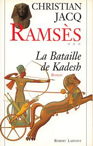 remarques: | Ramsès, la bataille de Kadesh, tome 3 Ramsès se prépare à la grande guerre contre les hittites alors que l'espion Raia continue ses activités Ramsès reçoit de l'hébreu Abner le témoignage que Moïse a tué Sary en état de légitime défense entretemps, le piège du mage Ofir fonctionne et Serramanna est arrêté pour trahison n.b. Séthi Ier portait le nom de son dieu protecteur Seth, dieu de l'orage et des ténèbres, meurtrier d'Osiris Kâ = le double de pharaon l'armée de Ramsès II (env. 20'000 hommes répartis en 4 groupes avec des brigades d'archers) se met en marche avec son corps d'élite: la charrerie Ramsès est accompagné de son lion Massacreur qui comme protecteur avait pris la place de Serramanna à Canaan, les égyptiens sont salués par une volée de flèches mais la forteresse est conquise sans grande difficultée >> p. 97 Setaou avec sa compagne Lotus sont nommés médecins de campagne et soignent les blessés dans la tente-hôpital par la suite, tout le pays de Canaan ainsi que la Galilée sont soumis à pharaon mais aucun hittite ne s'y trouvait et Moïse restait introuvable l'arrivée à Megiddo où la résistance se fait plus acharnée, malgré tout une offensive syrienne est repoussée et la forteresse de Mégiddo tombe aux mains de pharaon après une courte résistance >> p. 119 d'une part l'urine utilisée par Setaou comme désinfectant et d'autre part la force et l'habilité des archers égyptiens Ramsès s'apprête maintenant à reconquérir la province d'Amourrou (entre Tyr et Byblos) = territoire tampon entre les protectorats égyptiens et le pays des hittites, c'était un territoire à 400 km de l'Egypte Ramsès décide alors de pousser jusqu'à Kadesh mais à mi-chemin, il renonce à une offensive trop loin de ses bases d'approvisionnement apparition de Vargoz, chef des brigands des sables, à la solde des hittites et dirigé mentalement par le mage Ofir pour assassiner Ramsès, toutefois cette tentative échoue grâce à la vigilance du lion Massacreur entretemps à Memphis, Serramanna est reconnu innocent par Améni, le grand scribe il est libéré et regagne la confiance de Ramsès >> p. 157 l'orchestre féminin de Chénar composé d'une harpiste, 3 flûtistes et une hautboïste >> p. 171 peut'être une petite erreur de distance par Jacq (Memphis à Pi-Ramsès = 200 km, à 13 km/heure par bateau, Chenar devrait pouvoir atteindre Pi-Ramsès depuis Memphis en 15 heures et non en deux jours) mort de Romé, l'intendant de Ramsès par la magie noire d'Ofir qui veut éliminer son complice Romé qui avait dérobé le châle de la reine dans sa capitale Hattousa (à 150 km à l'est d'Ankara), Ouri-Téchoup, fils du roi hittite Mouwattali, fait des projets pour mener une contre-offensive sur les troupes de Ramsès >> p. 193 description d'Hattousa, une forteresse en nid d'aigle l'armée et le commerce étaient les deux piliers de l'empire hittite en Egypte, l'étau se resserre autour de Raia l'espion hittite >> p. 216 la drôle déclaration de guerre envoyée par Mouwattali mais ce n'était pas celle attendue par Ramsès >> p. 221 les plantes appréciaient les tendres paroles des jardiniers autant que l'eau nourricière de son côté, Moïse avait trouvé refuge au pays des Madiânites où personne ne le trouverait tandis que Raia l'espion échappe à ses poursuivants et rencontre son successeur dans le réseau d'espion hittite: Möba, l'ex- ministre égyptien des affaires étrangères! Nefertari, suite à l'envoûtement d'Ofir, commence à dépérir, Ramsès de retour en Egypte demande l'aide de la déesse-lionne Sekhmet, puissance créatrice et guérisseuse mais pour que Nefertari se rétablisse complètement, Ramsès doit aussi trouver la pierre de Nubie Nefertari hors de danger, Ramsès avant de repartir en campagne, fait arrêter son frère Chénar dénoncé par Achâ qui était resté fidèle à pharaon et espionnait Chenar et lors de la 5ème année du règne de Ramsès, l'armée égyptienne se remet en marche (à nouveau 20'000 hommes et 500 chars de combat) le contact avec l'armée hittite se fait attendre et celle-ci ne peut être localisée mais quand Ramsès commence le siège de la forteresse de Kadesh, celui-ci est surpris sur ses flancs par une forte offensive hittite qui était restée camouflée à l'est de la rivière Oronte (40'000 soldats et 3500 chars de combats hittites!!!) Ramsès était tombé dans un piège >> p. 343 une grande partie de l'armée égyptienne est mise hors d'état de combattre toutefois telle une divinité, Ramsès sur son char et avec l'aide de Massacreur résiste à l'assaut hittite jusqu'à l'arrivée d'une armée égyptienne de réserve qui arrive par le littoral non gardé par les hittites et qui se lance à leur tour sur les flancs de l'armée hittite Ramsès remporte une grande victoire dans la plaine mais ne peut s'emparer de la forteresse de Kadesh une paix provisoire est alors conclue et Ramsès retourne en Egypte en se faisant passer pour un général victorieux bien que la bataille ait été quelque peu indécise (les hittites ne sont pas complètement battus) dès lors Ramsès se fera appeler Ramsès le Grand et ses exploits seront gravés dans les temples et autres édifices (peut'être un peu trop exagérément) >> p. 366 les bouquets de rose importés de Syrie >> p. 343 mon père, pourquoi m'as-tu abandonné? (déclaration de Ramsès à son dieu Amon au début de la bataille de Kadesh, similitude à l'appel du Christ?) mais déjà les hittites préparent des préparatifs de guerre et Ramsès sait que la guerre va reprendre bientôt, le fils de la lumière doit continuer à manier le gouvernail du navire même si le courant est contraire >> ici se termine la trilogie du règne de Ramsès II, la suite continue avec - tome 4 la dame d'Abou Simbel (1996) - tome 5 sous l'acacia d'Occident (1997) la suite des aventures de Ramsès II avec - son épouse Nefertari et la reine-mère Thouya - Kh