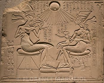 remarques: | Akhenaton et Nefertiti, le couple solaire dans la collection les énigmes de l'univers, Akhenation est considéré comme "l'inventeur" du monothéisme dans l'histoire du monde prologue - l'enquête initiatique sur le mystère du pharaon Amenophis IV qui prit le nom d'Akhenaton et de son épouse Nefertiti, mystère qui n'a toujours pas encore été complèrement éclairci - la période amarnienne qui se réfère à la ville de Tell-el-Amarna devenue la capitale d'Akhenat première partie: un roi célèbre et inconnu, comment connaître Akhenaton? - on parle d'un "doux" Akhenaton, pacifique, hostile à la violence - on a supposé que Akhenaton était malade physiquement, mais sa momie n'a jamais été retrouvée - en tout cas, ce fut un personnage mystique qui conçut une révolution religieuse et sociale - Akhenaton, issu de Amenophis III et de la reine Tii règna de 1370 à 1337 BC, Nefertiti vécut de 1370 à 1332 et Toutankhamon de 1345 à 1327 BC n.b. en comparaison, la pyramide de Chéops a été construite vers 2560 BC donc plus de mille ans de différence séparent le règne d'Akhenaton à celle des pyramides - le savant Amenhotep, conseiller et chef des maîtres d'oeuvre, eut une grande influence sur Akhenaton - création du dieu Aton représentant la lumière solaire, Akhenaton signifiant l'esprit efficace d'Aton, akh = initié nomenclature - initiatique = qui a trait à l'action consistant à transférer un savoir, un enseignement ou une pratique à un novice - ostracon = éclat de calcaire ou tesson de terre cuite utilisé comme support d'écriture - bicéphale = qui a deux têtes, au figuré deux chefs, deux directions deuxième partie: les origines d'une épopée et ses principaux personnages - Amenophis III dirige le pays des Deux-Terres, nom traditionnel de l'Egypte qui est alors un pays riche avec un admirable essor des arts - il marie une fille au roi babylonien et doit faire façe à la montée du péril hittite - il doit aussi composer avec la rivalité de la riche cité de Thèbes, grand centre religieux et économique, dirigé par le grand prêtre d'Amon, dieu et seigneur de Thèbes la magnifique en rivalité avec les cités de Memphis et d'Heliopolis - sous le règne d'Aménophis III, la direction du pays est bicéphale: pharaon et le grand prêtre d'Amon, mais de premières discordes surgissent - Akhenaton se prend pour le fils du soleil et veut établir une religion universelle, il s'appelle aussi le prophète de Rê-Harakhti signifiant création permanente de la vie - il arrive sur trône d'Egypte à l'âge de 15 ans en cogérence avec son père Amenophis III qui avait accepté le culte d'Aton à Amarna, cité qui existait déjà, son fils arrive sur le trône avec le titre d'Amenophis IV, mais prendra un peu plus tard le titre d'Akhenaton >> p. 62 Aton a comme symbole un disque solaire autour duquel s'enroule un serpent et au cou du reptile pend la fameuse clef de vie >> p. 67 description de Tii, mère de Akhenaton qui ne combattit en aucune manière l'hérésie de Akhenaton >> p. 75 mais pas plus qu'Akhenaton, Tii ne pouvait prévoir que la XVIIIème dynastie entrait dans une période de crise, due essentiellement à la rupture de l'équilibre international >> p. 77 l'épouse du soleil, la reine Nefertiti qui signifie "la belle est venue", elle serait d'origine aristocrate et égyptienne >> p. 83 Akhenaton n'était probablement pas monogame et il est mentionné une seconde épouse nommée Kia - toutefois, la reine Nefertiti n'a pas pu donner au pharaon un héritier mâle et Toutankhaton serait le fils d'Akhenaton et de sa soeur non formellement identifiée, mais qui a été surnommée "the youger lady" nota bene a) Toutankhaton naît en l'an XII du règne d'Akhenaton à Thèbes ou à Akhetaton où il grandit dans le cercle de la famille royale, son nom de naissance, Toutankhaton, signifie "image vivante d'Aton", c'est-à-dire la réincarnation terrestre du dieu b) les seules sœurs connues d'Akhenaton sont Satamon, Iset, Henouttaneb et Nebetâh, les trois premières auraient épousé leur père, Amenhotep III; Nebetâh serait peut-être la Younger Lady - à la mort d'Akhenaton, Nefertiti éduqua le jeune Toutankhaton e le présenta aux prêtres d'Amon qui l'acceptèrent en lui donnant le nouveau nom de Toutankhamon - Nefertiti aurait sauvé l'Egypte, mais en renonçant au rêve le plus cher de son époux Akhenaton - toutefois, cette théorie sur Toutankhamon reste encore sujet à caution et bien des mystères pèsent aussi sur l'existence d'Akhenaton et de la reine Nefertiti troisième partie: Akhenaton bâtisseur >> p. 97 un évènement remarquable consista dans la création d'une ville à la gloire du dieu Aton, cité dont il ne reste pratiquement rien >> p. 98 à 112 description d'Amarna ou Akhetaton, la ville fut construite rapidement, le gros oeuvre souffrant de la rapidité des travaux, la cité restera inachevée, le temple d'Aton était le joyau de la cité nouvelle, Amarna fut durant sa courte existence la capitale du plus grand empire du monde et le centre des Deux-Terres >> p. 107 le centre sacré de chaque lieu religieux était un obélisque = pierre de lumière qui établissait la jonction entre le ciel et la terre >> p. 115 deux des filles connues du couple royal: Baket Aton et Meryt Aton présentent toutes deux une dolicocéphalie marquée, c'est à dire un allongement du crâne assez extraordinaire l'art à la conquête de dieu - les oeuvres d'art de la période amarnienne ont leur place à part et célèbrent bien sûr surtout le culte d'Aton - Akhenaton fut à l'origine d'une révolution sociale que certains n'hésitèrent pas à qualifier de socialiste >> p. 136 Akhenaton l'hérétique ne pratiqua aucune "chasse aux sorcières" et ne fit souffler aucun vent de panique dans l'administration égyptienne - les deux principaux conseillers politiques d'Akhenaton étaient sa mère Tii et son oncle Aï, l'un et l'autre appartenait à l'a