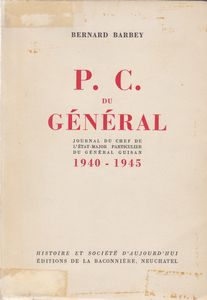 remarques: | P.C. du général, journal du chef de l'état-major particulier du général Guisan 1940-1945 1940 - Barbey entre au service de renseignement du lieutenant-colonel Masson, puis devient en juin 1940 chef d'état-major particulier sous le commandement directe du général Guisan - à Gümligen dans une ferme où il prend la succession de Gonard avec comme adjoint le capitaine Brunner - premier objectif: préparer le dispositif de défense du plateau du Gempen - entretiens avec le chef d'état-major général de l'armée: le colonel divisionnaire Huber >> p. 17 la cluse de Balsthal n.b. cluse = vallée creusée perpendiculairement dans une montagne par une rivière, mettant ainsi à jour sa structure en anticlinal en créant une gorge ou un défilé encadré par des escarpements. - 12.6.1940 l'Italie entre en guerre - ébauche de la "Festung Alpen" (le hérisson) - préparation du front occidental: Jura soleurois, Franches-Montagnes, Ajoie, Jura Neuchâtelois - 18.6.40 Pétain demande l'armistice - les réfugiés commencent à affluer à la frontière franco-suisse, un régiment français chassé par l'avance des blindés de Guderian se présente à l'internement en Suisse - le capitaine Vogel = officier de liaison entre le général et le conseil fédéral (Pilet-Golaz, président) - problèmes des combats aériens à la frontière et de l'opinion publique (une presse suisse trop libérale envers l'Axe) - 21.6. la Suisse est encerclée par les forces de l'Axe sauf pour une ouverture vers la Savoie - autre problème: remonter le moral des troupes - préparation de la réunion du Rütli >> p. 31 la conférence du Rütli, le discours de Guisan, consigne générale: résister à tout prix, le capitaine Brunner est remplacé par le major Steinrisser - le 7.8.40 en route pour le Passwang avec la Buick du général - rencontre avec Bandi, chef de l'aviation, à Dübendorf >> p. 40 mention d'un certain Couchepin - 18.9.40 grandes manoeuvres militaires auxquelles participe le président Pilet-Golaz >> p. 45 les verres de l'amitié - visite des camps d'internés - novembre 40 ministre de la défense depuis 1931, Minger démissionne et est remplacé par Kobelt - décembre 40, inauguration du train de commandement de Guisan (ce n'est pas celui de Goering) mais il est déjà bien fonctionnel - bombardements à Bâle et Zurich 1941 - un adversaire redoutable: la paperasserie, la presse suisse cause à nouveau du souci au général - mission de sacrifice pour l'aviation qui ne tiendrait pas plus de 3-4 jours en cas d'invasion - le QG de Guisan est déplacé à Interlaken à la villa Krantz, problème avec le commandant Däniker qui aimerait s'adapter à l'Axe, désaccord entre les chefs >> p. 87 mention de la comtesse de La Baume n.b. la famille de La Baume est une famille noble française originaire de la Bresse, deux personnalités: - Jeanne-Marguerite de La Baume-Montrevel (1728-1808), comtesse de La Baume-Montrevel, marquise de Saint-Martin, baronne de Caromb, Rougemont, Saint Hyppolyte etc... ainsi que marquise de Lignéville et d'Houécourt, comtesse de Tumejus, princesse de Conca et de Vénafro, duchesse de Mignano et ceci par son mariage avec son cousin-germain Eugène-François-Pierre de Ligniville et d'Houécourt (1728-1778), la marquise de Ligniville fut une grande protectrice des arts et des lettres, l'exemple le plus marquant étant son hôtel de Besançon,(Hôtel de Ligniville) elle protégea Johann Melchior Wyrsch et Luc Breton ainsi que l'architecte Bertrand - Louise Françoise de La Baume Le Blanc (1644-1710), duchesse de La Vallière, favorite de Louis XIV >> p. 93 la doctrine du général De Gaulle peut-elle être appliquée à l'armée suisse? 23.10.1941 Guisan fête ses 67 ans - le Japon entre en guerre, visite à Courgenay chez la Gilberte 1942 tournée en Ajoie, les Rangiers, La Ferrière, Chaux-de-Fonds proposition de Masson pour rencontrer un haut officier SS 29.9.42 rencontre Masson/Schellenberg à Waldshut novembre 42 débarquement des alliés en Afrique du Nord, ce qui va changer la donne 1943 la ligne Viking fonctionne bien et produit de nombreux documents en mars, rencontre Schellenberg/Guisan/Masson en l'hôtel Bären de Biglen >> p. 166 soirée au cirque Knie à Berne >> p. 170 Hörning = un des meilleurs pilotes de chasse suisses >> p. 172 le général veut rajeunir le haut-commandement >> p. 173 les nuages de la tabagie traditionnelle durant les réunions (surtout des cigares) des 12 commandants de corps, un seul ne fumait pas: Combe qui stoïquement inhalait la fumée des autres! le remplaccement de Bandi est décidé 1944 - Rihner prend la succession de Bandi >> p. 194 une nouvelle arme suisse: la grenade antichars - février 44 épidémie de grippe en Suisse romande - 25.2.44 rencontre de Guisan avec le prof. Sauerbruch, le fameux chirurgien allemand qui pense que l'Allemagne a d'ore et déjà perdu la guerre et que la Suisse n'a plus rien à craindre désormais mais le général reste méfiant >> p. 202 coup de force allemande sur la Hongrie - nombreux atterrissages forcés de bombardiers alliés en Suisse >> p. 204 bombardement de Schaffhouse par des avions alliés >> p. 206 manoeuvres militaires (les Bleus contre les Rouges) >> p. 207 visite des avions internés à Dübendorf (Boeing, Liberator, forteresses volantes et Messerschmitt 110 armé pour la chasse nocturne) - juin 44 débarquement en Normandie, désaccord entre Guisan et le conseil fédéral concernant une nouvelle mobilisation >> p. 229 l'armée suisse compte quelque 200'000 hommes sous les armes - août 44 les alliés avancement rapidement, l'importance du matériel américain >> p. 232 la défense de Bâle est renforcée >> p. 236 Ajoie, la bande de terre suisse qui s'avance en France: la Queue-au-loup = une ferme isolée qui surplombe la route de Delle près de Boncourt qui servit de lieu de passage pour les réfugiés et clandestins voulant passer la frontière - Guisan veut empêcher la