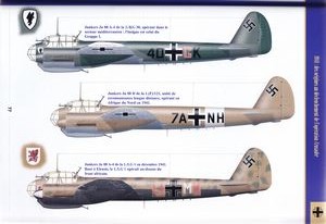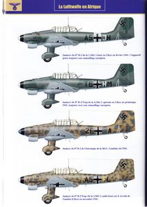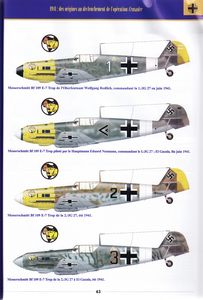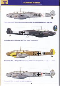 remarques: | des origines 1941 au déclanchement de l'opération "Crusader", engagement dès décembre 1940 en Libye d'escadres de la Luftwaffe qui par la suite soutiendront les offensives de Rommel le 17.1.1941 une première opération aérienne fut lancée sur le canal de Suez, sur 12 appareils, seuls 2 purent revenir à leur base, mais de nombreux autres raids furent lancés sur le canal de Suez, principalement depuis la Crète n.b. à noter - la fameuse première équipe de chasse de Bf 109 le Staffel I/JG 27 avec l'insigne comportant la carte d'Afrique avec une tête d'africain noir et une tête de léopard - mention de Bisleri, l'as de l'aviation italienne alors que les as allemands furent Neumann, Schroer, Sigel, Heller et bien sûr Marseille >> description des 4 appareils les plus utilisés en Afrique du Nord: - Junker JU 87 (stuka), l'artillerie volante - Junker JU 88 bombardier moyen mais rapide (surnommé le crayon) - Junker JU 52 avion transporteur - Messerschmitt Bf 109 chasseur - Messerschmitt Bf 110 chasseur-bombardier >> compte-rendu très détaillé des combats aériens de la Luftwaffe sur le théâtre nord-africain avec de bonnes illustrations, revue très spécialisée avec de superbes photos inédites annexes - couverture du cahier - le Junker Ju-87 - le Junker Ju-88 - le Messerschmitt Bf 110 - le chasseur Messerschmitt Bf-109 E-7 avec le signe du Geschwader 27 - le sigle de l'Afrika Korps - le sigle du Geschwader 27 (Bf-109 E-7) |