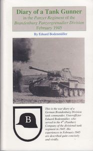 remarques: | English book diary of the tank gunner Eduard Bodenmüller in the Panzer Regiment of the Brandenburg, Panzergrenadier Division volume 1 february 1945 volume 2 march/april 1945 |