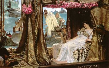 remarques: | 1/ Mareotis 55 BC, Cléopâtre, fille aînée de Ptolémée XIII l'Aulète, sa jeune soeur Arsinoe et ses deux frères Ptolémée XIV et XV, description de Cléopâtre, première rencontre avec Marcus Antonius et Cneius Pompeius alors que Ptolémée XIII est en exil à Rome >> p. 22 un Marcus Antonius barbu et colonel de cavalerie Iras et Charmion, les deux servantes de Cléopâtre Gabinius, gouverneur romain à Alexandrie, Rabinus le financier de Ptolémée XIII, à la mort de Ptolémée XIII, Cléopâtre devient souveraine d'Egypte mais par tradition doit se marier avec son frère Ptolémée XIV >> p. 44 les funérailles de Ptolémée XIII 2/ le souffle de feu chassée par son frère et mari aidé de ses conseiller théodote, Potheinos et Achillas, Cléopâtre se réfugie chez Abdul, roi de Petra dans le pays de Gessen. arrivée de Pompée à 60 ans après Pharsale en Egypte où il est assassiné et sa tête présentée à César César est ulcéré par le meurtre de Pompée, finalement il demande à ce que Ptolémée et Cléopâtre paraissent devant lui et Cléopâtre usera d'un subterfuge pour rencontrer par surprise César qui tombera amoureux d'elle 3/ la boue et le sang description de César par Diodore, le philosophe de Cléopâtre, guerre alexandrine, mort de Ptolémée XIV et capture d'Arsinoe Céopâtre devient souveraine d'Egypte sans partage mais doit encore considérer son jeune frère Ptolémée XV appelé l'Enfant naissance de Césarion (= César-Ptolémée), César considère Cléopâtre comme une épouse, mais ne répudiera jamais Calpurnia, son épouse romaine légitime toutefois >> p. 262 selon l'auteur César aurait préparé un projet de loi lui accordant le droit d'épouser plusieurs femmes!! (le mari de toutes les femmes) N.B. de toute façon, l'auteur n'est pas un fervent admirateur de César alors que Cléopâtre est presque considérée comme un génie militaire!! >> p. 125 la procession du "Thalameyos" (=navire = ville flottante) le long du Nil vers le sud 4/ l'idylle romaine César et un peu plus tard Cléopâtre rejoignent Rome Ruffius, le bras droit de César en Egypte Amonius est l'homme de confiance et l'espion de Cléopâtre à Rome rencontre de Cléopâtre avec Octave, Cicéron et Brutus mais aucun d'eux ne ressent de l'amitié pour Cléopâtre les amours de Cléopâtre dont le sculpteur Archelaos qui devient son amant et qui sera éliminé par César, les amours de Cléopâtre apportent déjà la mort! César prépare sa campagne contre les Parthes, selon l'auteur il se serait débarrassé (et non Cléopâtre) de Ptolémée XV l'Enfant César refuse la couronne de feuilles d'or, symbole de la royauté aux fêtes des Lupercales un complot se forme contre César qui sentait l'approche de la mort. Cléopâtre (beauté, majesté et intelligence) a alors 32 ans et César 57 ans assassinat de César, Antoine prend la tête du mouvement pro-césarien et César n'avait mentionné ni Cléopâtre ni Cesarion dans son testament, Cléopâtre se sentait trompée n.b. la fin shakespearienne de César selon l'auteur 5/ la reine solitaire Arsinoe délivrée s'allie avec les assassins de César contre Cléopâtre alors qu'un faux Ptolémée XIV se manifeste dans la Haute-Egypte dispute entre Antoine et Octave puis réconciliation avec le trimvirat Antoine-Octave-Lépide, la proscription est déclarée et Ciceron est mis à mort victoire d'Antoine et Octave à Philippes contre Brutus et Cassius, description de Fulvia épouse d'Antoine, rencontre avec beaucoup de faste entre Antoine et Cléopâtre à Tarse 6/ l'inimitable Antoine gagne la popularité du peuple égyptien par ses extravangances, il créé la société des "inimitables" au sein de laquelle se déroulait d'immenses orgies Cléopâtre considère Antoine comme un histrion = un bouffon départ d'Antoine pour Athènes, mort de Fulvia, nouvelle réconciliation avec Octave, Antoine épouse Octavie, soeur d'Octave, Arsinoe est exécutée par Antoine rencontre de Sextus Pompeius avec Cléopâtre, Sextus recherche une alliance avec Cléopâtre qui refuse Cléopâtre donne des jumeaux à Antoine: Cléopâtre-Séléné et Alexandre-Helios, Octavie donne à Antoine une fille appelée Antonia mariage d'Antoine et de Cléopâtre à la mode égyptienne à Antioche, Antoine part en campagne contre les Parthes, rencontre de Cléopâtre avec Hérode qui devient brièvement son amant pour récupérer la ville de Jericho n.b. l'épisode avec Herode est amusant et bien imaginé mais peu crédible 7/ les neiges d'Arménie défaite d'Antoine devant Phraaspa et retraite humiliante sur Leuké-Comé (sud d'Antioche) >> p. 282 la tactique des Parthes arrivée de Cléopâtre sur la galère "l'Antoniade", mort de Sextus Pompeius exécuté par un Antoine jaloux >> p. 321 les armes de Cléopâtre: les larmes petite campagne victorieuse d'Antoine en Arménie, le défilé triomphal s'effectue toutefois à Alexandrie au lieu de Rome ce qui offusque le peuple romain surtout suite aux donations d'Antoine à l'Egypte la guerre entre Antoine et Octave est imminente, Octave se débarrasse de Lépide, suite à la répudiation d'Octavie par Antoine, Octave déclare la guerre à l'Egypte, plusieurs généraux abandonnent Antoine les forces d'Antoine se rassemblent en Grèce (Patras et Actium), mais Octave prend Antoine de vitesse en débarquant ses troupes en Epire 8/ les lacs amers Antoine est bloquée à Actium par la flotte d'Octave commandée par un homme de valeur: Agrippa durant la bataille navale, fuite d'Antoine par lâcheté ou par amour de Cléopâtre qui le quitte avec la flotte égyptienne et qui commence à douter d'Antoine Cesarion avait maintenant 17 ans et détestait Antoine (?!) fuite de Cesarion, Octave met le siège devant Alexandrie, il offre de négocier avec Cléopâtre si celle-ci lui livre Antoine, Cléopâtre refuse 9/ les compagnons de la mort (Synapothanoumenoï) Antoine prépare la défense d'Alexandrie mais 