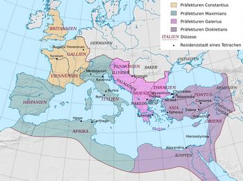remarques: | le glaive et la croix (Flavius Valerius Constantinus) vie de Constantin Ier le Grand, empereur chrétien de 306 à 337, le monde romain à la naissance de Constantin est partagé en tétrarchie, = système à quatre gouvernements entre: - l'empire romain d'Orient avec Dioclétien, Caius Aurelius Valerius Diocletianus Augustus - l'empire romain d'Occident avec Maximien Hercule, Marcus Aurelius Valerius Maximianus Herculius ces deux empereurs se nomment Auguste, ils sont secondés par deux Césars: - Galère dans l'empire d'Orient Caius Galerius Valerius Maximianus - Constance Ier Chlore dans l'empire d'Occident Gaius Flavius Valerius Constantius Constantin est le fils de Constance Chlore et de Hélène, 1ère femme de Constance qui par la suite, pour des raisons politiques, dut épouser Theodora, belle fille de Maximien; de cette union Constance eut 2 fils et 3 filles, les fils: Flavius Iulius Dalmatius et Flavius Julius Constantius qui furent tous deux exécutés, victimes des purges organisées par Constantin II, Constant Ier et Constance II afin de supprimer tout concurrent à leur montée sur le trône en mai 337 (tout comme les deux fils de Flavius Dalmatius: Flavius Dalmatius II et Flavius Hannibalianus, toutefois les 2 fils de Flavius Julius Constantius vont survivre à cette purge et l'un deux deviendra par la suite empereur sous le nom de Julien l'Apostat 361-363) >> p. 24 la légende de la toison d'or cubiculaire = chambellan >> p. 72 l'instabilité de la frontière de l'Euphrate contre les perses et les parthes - les trois grandes cités romaine de l'époque: Rome, Alexandrie et Antioche >> p. 176 le réseau routier romain, le cursus publicus >> p. 205 la Porta Nigra de Trèves = Augusta Treverorum Mogontiacum = la ville actuelle de Mayence >> p. 221 en 307 à Arles, mariage de Constantin avec Fausta, la deuxième fille de Maximien >> p. 228 le colombarium = niche pour poser une urne dans un cimetière, mort de Maximien Hercule en 310 - la dispute perdure entre Theodora et Fausta conernant la succession de Constantin Ier >> p. 248 bataille de Saxa Rubra près de Suse et la tactique de Constantin adoptée contre la cavalerie cuirassée de Maxence n.b. Suse est une commune dans les environs de Turin >> p. 256 combat ultime contre Maxence à la bataille du pont de Milvius en 312 c'est à cette occasion que Constantin Ier, suite à un rêve qu'il eut dans la nuit précédant la bataille prit comme étendard, le "labarum", portant le symbole du chrisme avec le signe hoc signo vinces (par ce signe tu vaincras) >> p. 306 réorganisation de l'empire par Constantin qui le divise en quatre préfectures, chacune dirigé par un préfet prétorien - Bretagne, Gaule et Espagne - Italie, Rome et Afrique - Illyrie, Macédoine et Thrace (Pannonie) - Asie Mineure, Syrie, Palestine et Egypte >> un excellent roman mêlant action et histoire par Slaughter, un chirurgien de la deuxième guerre mondiale devenu écrivain et où Constantin Ier se rendra compte que le christianisme n'aura pas la réputation qu'on aurait pu attendre de cette religion première information en 335 (son premier fils Crispus exécuté en 326 pour des raisons mal élucidées sur fond d'adultère avec la seconde épouse de l'empereur), l'empire est réparti comme suit: - Constantin II auquel échoient la Gaule, la Bretagne et l'Hispanie, - Constant Ier auquel reviennent, sous la tutelle de son frère aîné, l'Italie, l'Afrique et la Pannonie - Constance II qui reçoit l'Asie Mineure, la Syrie et l'Égypte avec - Dalmatius qui obtient la Macédoine et la Thrace tandis que - son frère Hannibalien, maintenu à l'écart du collège impérial, est nommé roi des rois des nations pontiques (ces deux derniers seront toutefois éliminés à la mort de Constantin Ier) lorsque Constantin meurt en 337, il laisse une situation inédite avec quatre Césars sans Auguste, cette situation ne perdure guère et ses fils entreprennent le massacre des frères de Constantin et de leurs enfants mâles par l'armée au nombre desquels Dalmatius, Hanibalien et cinq de leurs cousins, à l'exception de Gallus et Julien, il paraît douteux que ces meurtres aient été concertés par Constantin II et ses frères qui ne s'étaient pas vus depuis longtemps et se trouvaient alors assez éloignés les uns des autres; il apparaît ainsi plus vraisemblable qu'ils soient le fait du seul Constance et de son entourage deuxième information A) Dioclétien, de son nom complet Caius Aurelius Valerius Diocletianus Augustus (né v. le 22 décembre 244 en Dalmatie, mort le 3 décembre 311), est un empereur romain qui régna de 284 à 305 né dans une famille modeste de Dalmatie, Dioclétien gravit les échelons de l'armée pour devenir commandant de la cavalerie de l'empereur Carus, après la mort de Carus et de son fils Numérien durant la campagne en Perse, il est proclamé empereur, le titre est également revendiqué par Carin, le fils survivant de Carus, mais Dioclétien le bat à la bataille du Margus, avec son accession au pouvoir, Dioclétien met fin à la crise du troisième siècle, il nomme co-empereur (auguste) son collègue Maximien Hercule en 286, il délègue encore son pouvoir en nommant deux césars en mars 293: Galère et Constance, en vertu de cette tétrarchie, chaque empereur règne sur un quart de l'Empire, Dioclétien sécurise les frontières de l'Empire et combat toutes les menaces de son pouvoir, il bat les Sarmates et les Carpes lors de plusieurs campagnes entre 285 et 299, les Alamans en 288, et les usurpateurs en Égypte en 297/298 Galère, aidé par Dioclétien, fait campagne avec succès contre les Sassanides, ennemi traditionnel de l'Empire, en 299 il met à sac leur capitale, Ctésiphon, il mène ensuite les négociations et réalise une paix durable et favorable B) Marcus Aurelius Valerius Maximianus Herculius (vers 250-juillet 310), communément appelé Maximien Hercule (ou simplement Maximien), est César (empereur roma