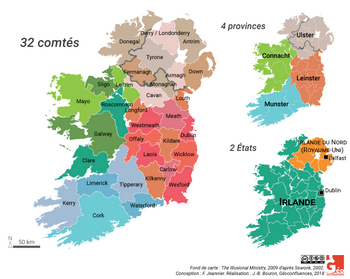 remarques: | Trinité 1885, histoire de l'Irlande, la misère, l'esclavage, la famine, la paysannerie catholique, la révolte, la lutte pour l'indépendance les luttes de classe, Sinn Fein et IRB, compression de l'histoire irlandaise en une période de trente ans de 1885 à 1915 tome 1 la jeunesse de Conor tome 2 Caroline tome 3 Shelley TOME I les héros de ce premier tome sont Connor Larkin, son ami Seamus O'Neill et Caroline Weed, fille de sir Frederick Weed, le magnat de l'acier d'Ulster; autres personnages du roman: - Dooley Mc Cluskey - Kevin O'Garvey, head of land league for counties of Donegal and Derry - Hamilton Walby, protestant nobleman - Frederick Weed - Roger Hubble, count of Coleraine - Daddo Friel, Irish shanachie - Tomas Larkin, father of Connor A) livre 1 Ballyutogue - en 1885, les familles Larkin et O'Neill à Ballyutogue (nom qui veut dire lieu de désordre ou de tracas en langue celte) dans l'Ulster près de Londonderry, comté de Donegal - la mort du vieux Kilty Larkin dont on doit aviser les vaches et les abeilles de sa mort >> p. 19 Kilty Larkin avait meilleure mine que de son vivant n.b. le fossé entre catholiques et protestants, les miséreux et les nantis, tout spécialemment en Ulster avec la famille de sir Frederick Weed - le poteen = alcool fort de contrebande - l'église de Saint Colomban, le saint moine fondateur de Derry - le shanachie = conteur d'histoires - slainte est l'expression traditionnellement employée en Écosse et en Irlande pour porter un toast - la Lagan est un fleuve d'Irlande du Nord traversant les comtés d'Antrim et de Down ainsi que la ville de Belfast - la révolte des Fénians 1867 >> voir sous information - constabulary = police royale irlandaise a été créée par la Grande-Bretagne en 1822 pour maintenir l'ordre en Irlande, elle comptait plus de 8 600 policiers en 1841 - le lambeg est un tambour cylindrique irlandais à deux peaux lacées, similaire aux grosses caisses et généralement tenu verticalement comme elles, il est utilisé le plus souvent pendant les marches en Irlande du Nord, surtout par l'institution d'Orange, il est un des instruments acoustiques les plus intenses du monde et peut atteindre plus de 120 dB - lapinisme = forte capacité reproductive - parturition, appelée aussi mise-bas, est une des étapes de la reproduction vivipare, consistant en l'action de mettre au monde la progéniture, peut aussi être désigné pour un accouchement - parpaillot = nom donné aussi aux protestants par les irlandais catholiques - goémon ou varech est un mélange indéterminé d'algues brunes, rouges ou vertes, par extension goémon désigne aussi l'engrais de goémon - la glène = terme d'anatomie pour une surface articulaire - coruscant = brillant, éclatant - aboulique = atteint d'aboulie (diminution pathologique de la volonté) >> 55 ils (les anglais) nous ont si mal traités que le mendiant de Londres le plus démuni n'aurait pas troqué son sort contre celui d'un fermier irlandais >> p. 57 l'origine de la société d'Orange d'Ulster (des presbytériens) nommé en l'honneur du roi Guillaume III d'Orange, le libérateur des protestants d'Irlande après la victoire remportée sur Jacques II à la Boyne en 1690 >> p. 79 Union Flag ou Union Jack est le drapeau du Royaume-Uni, il combine la croix de saint Georges du drapeau anglais et la croix de saint André du drapeau écossais, après l'Union de 1801, ce drapeau fut augmenté de la croix de saint Patrick pour représenter l'Irlande à noter que l'Irlande fut sous domination britannique dès 1171 >> p. 84 la grande famine qui a duré sept années de suite (1845-1852), l'apparition du mildiou sur l'île a anéanti presque intégralement les cultures locales de pommes de terre qui constituaient la nourriture de base de l'immense majorité de la population, les paysans irlandais B/ livre 2 le jeu des Orangistes >> p. 123 le massacre des irlandais de Drogheda lors du siège de cette ville par les troupes de Oliver Cromwell en 1649 >> p. 140/141 l'empire des fonderies Frederick Weed à Belfast n.b. Frederick Weed n'existe pas, c'est un nom fictionnel >> p. 184 le faste du palais Rathweed Hall de sir Frederick en contraste avec la misère des irlandais >> p. 212 le train Pullmann de sir Frederick Weed >> p. 240 le cortège du 12 juillet par l'ordre des Orangistes >> p. 280 l'origine du changement de nom de Derry par Londonderry >> p. 291 la défaite historique en novembre 1885 de Hamilton Walby, seigneur de Lettermacduff >> p. 292 victoire de l'irlandais Keven O'Garvey qui fut élu membre du parlement britannique avec 85 autres candidats irlandais et Charles Stewart Parnell était le roi sans couronne d'Irlande >>p. 293 participation de Randolph Churchill, père de Winston, dans les élections irlandaises en Ulster, l'Ulster l'accueillit à bras ouvert et il prit part à la formation du parti unioniste - Isambard Kingdom Brunel (1806-1859) était un ingénieur britannique, il est surtout connu pour avoir créé le Great Western Railway (grand chemin de fer de l'Ouest, ligne Londres-Bristol), une série de bateaux à vapeurs (dont le premier pourvu d'une hélice), de nombreux ponts et des tunnels importants, ses réalisations ont révolutionné les transports publics et l'ingénierie moderne - le drapeau de la province de l'Ulster, est également appelé main rouge de l'Ulster (Lamh Dearg) ou main sanglante de l'Ulster (Ulster bloody), il représente la main de Heremon O'Neill, un chef de clan scandinave, posée sur le blason des De Burgo (croix de saint Georges rouge sur fond jaune), les familles O'Neill et De Burgos régnèrent sur l'Ulster jusqu'en 1333 - Holywood est une ville du comté de Down en Irlande du Nord (à ne pas confondre avec Hollywood = bois de houx à Los Angeles) - Theobald Wolfe Tone (1763-1798) était un homme politique irlandais, aux yeux de certains, il est l’initiateur du nationalisme républicain irlandais - Daniel O'Connell (1775-1847) dit le libérateur