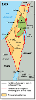 remarques: | ô Jérusalem l'histoire d'Israël tome 1 un partage en Terre Sainte, 29.11.1947 tome 2 le siège de Jérusalem, printemps 1948 TOME 1 le partage de la Palestine prologue - le 14.5.1948 les anglais quittaient la Palestine dont ils avaient reçu le mandat en 1922 première partie: un partage en Terre Sainte - le 19.11.1947 l'assemblée de l'ONU décidait de la partition de la Palestine avec 57% de son territoire attribué aux juifs, Jérusalem était placée sous mandat international, cette décision avait été possible grâce à l'intervention soutenue des USA en faveur du partage auprès des membres de l'ONU, il y eut 36 voix pour, 13 contre et 10 abstentions, mais ce vote allait déclancher une guerre entre les juifs et les arabes - Sion signifiait l'Elue et le sionisme la volonté de rassembler les juifs dans leur ancienne patrie dont ils avaient été chassés en 70 AC n.b. sion = nom de la place forte jébusite dont David s'empara et fit sa capitale, c'est aussi la montagne de dieu et le second nom de Jerusalem - la Terre Promise ou Terre d'Israël = Eretz Israël - en 1917 le ministre anglais Balfour avait avisé les juifs que le gouvernement de sa majesté était favorable à un état juif, mais pour les arabes c'était un nouvel acte d'impérialisme - Jérusalem = Yerushalayim en hébreu = ville de Paix - les trois haut lieux sacrés de la vieille ville a) pour les chrétiens: l'église du Saint-Sépulcre b) pour l'Islam: le Qoubbet es Sakhra = dôme du rocher, appelé aussi mosquée d'Omar c) le mur des lamentations, vestige de la fondation du temple, était le lieu le plus sacré du judaïsme - la Haganah, l'armée secrète juive et son fer de lance: le Palmach = force de frappe ou unité de choc créé en 1941 - le leader israëlien en 1948 était le vieux Daniel Ben Gourion qui signifiait le fils du lion >> p. 58/59 l'histoire de l'exil des juifs - en 1520 à Venise on nomma ghetto nuovo (nouvelle fonderie) le quartier de résidence forcé des juifs - le journaliste Theodor Herzl fut le premier à envisager un nouvel état juif et fonda le mouvement sioniste à Bâle en 1895 - 1949 création du mouvement arabe el Fatah contre Israël >> p. 71 l'histoire du grand mufti de Jérusalem - la guerre sera perdue ou gagnée sur les routes de Palestine, la survie des juifs dépendra des lignes de communication, la route de Tel Aviv à Jérusalem était la plus importante via Bab el Oued, la porte de la vallée - les deux partis se fournissaient en armes en Tchécoslovaquie - l'entraînement militaire des juifs les rendait supérieurs aux arabes malgré le manque d'armes >> p. 149 l'Irgoun est une organisation armée sioniste en Palestine mandataire, née en 1931 d’une scission de la Haganah et dirigée à partir de 1943 par Menahem Begin, le groupe Stern, actif entre 1940 et 1948, est un mouvement paramilitaire associé à l'Irgoun, après coup, il sera intégré dans l'armée israëlienne, mais il sera responsable en juillet 1946 de l'attentat sur l'hôtel David deuxième partie: de l'argent et des armes, hiver 1948 - les sept nations de la Ligue arabe: Egypte, Irak, Arabie Séoudite, Syrie, Yemen, Liban et Transjordanie - la seule vraie armée arabe était toutefois la légion arabe du roi Abdullah qui avait été entraînée par les anglais - le roi Abdullah faisait partie de la famille des Hachémites - la stratégie des arabes: étrangler les juifs de Jérusalem et la bataille pour les routes était déjà engagée - la guerre secrète et la guerre de propagande >> p. 151 l'espionnage était l'une des premières prouesses d'un service de renseignement dont les exploits devaient un jour stupéfier le monde - deux mois après le vote du partage, la ville de Jérusalem était en proie à un désordre encore jamais atteint dans le monde >>p. 216 les stephans n.b. le leader sioniste américain Stephan Wise avait ramassé tant de fonds que son prénom était devenu synonyme d'un million de dollars - arrivée avec 10 dollars, Golda Meïr allait repartir des USA avec 50 millions de dollars - Gedeon était le nom de code pour les opérations d'achats d'armes >> p. 222 la création d'une force aérienne juive troisième partie: le siège de Jérusalem, printemps 1948 - Jérusalem allait devenir le Stalingrad juif >> p. 245 le culte israëlite comporte deux rites: les juifs sépharades sont originaires des pays de la Méditerranée et les askhenazes viennent de l'Europe Centrale - les USA veulent maintenant remplacer le partage par une mise sous tutelle de la Palestine - en février 1948, une immense explosion à la rue Ben Yehuda déclanchée par les arabes détruit une partie du quartier juif, une centaine de juifs y perdirent la vie - Glubb Pacha était le chef de la légion arabe, c'était le blanc qui était devenu béduin tout comme Lawrence d'Arabie - avec le roi Abdullah, leur intention était d'annexer les parties arabes de la Palestine à la Transjordanie >> p. 299 l'histoire et l'origine des kibboutz >> p. 301 le système compliqué pour la traite des vaches les jours de sabbat - les voies de communication coupées avec Jérusalem, la cité était menacée de famine, Ben Gurion développe un plan d'urgence: l'opération Nachshon, sécuriser la route principale pour gagner Jérusalem - les deux édifices principales d'un village arabe: la mosquée et le moukhtar, la maison du maire >> p. 374 le massacre perpétué au village arabe de Deir Yassin en avril 1948 par les terroristes du groupe Stern >> p. 392 le livre blanc britannique de 1939 qui mettait fin à l'immigration juive en Palestine - les arabes refusèrent le compromis proposé par les USA de mettre la Palestine sous la tutelle de l'ONU pour éviter d'autres combats sanglants, les arabes comptaient sur leurs armées régulières pour jeter les juifs à la mer, toutefois leur sous-estimation des juifs et leur manque de cohésion allaient fausser tous leurs calculs - la campagne militaire déclanchée à troi