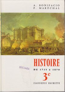 remarques: | Histoire de 1715 à 1870 - le XVIIIème siècle (1715-1789) - la période révolutionnaire (1789-1815) - les débuts de la période contemporaine (1815-1870) |