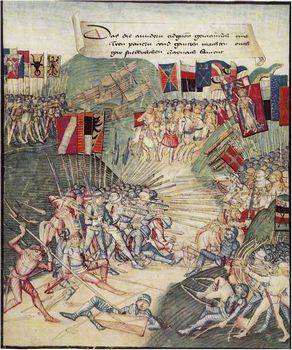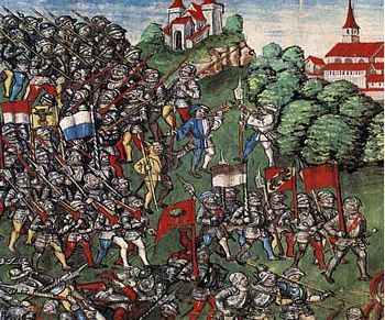 remarques: | extraits des mémoires de Philippe de Commynes, livres I à VI ayant travaillé pour ces deux personnages, Commynes réussit à bien décrire à tous deux leur caractère et leurs idées, livre de narration pure et véridique, écrit dans la littérature de l'époque, apportant aussi quelques détails inédits sur les personnages de Louis XI et de Charles le Téméraire - biographie de Louis XI sous la déposition d'un témoin, Philippe de Commynes, d'origine flamande, qui à 17 ans en 1464 entre comme écuyer au service de Charles, alors comte de Charolais - en 1472, Commynes change de maître en passant chez Louis XI qui le fera seigneur d'Argenton - Commynes a un style particulier, plus terne que les chroniques de Froissart, il n'en est pas moins précis et critique, il est plus diplomate avec la manière douce que guerrier avec la manière forte - avec Commynes, ce sera plutôt de la psychologie historique, s'apparentant quelque peu avec Machiavel - il meurt en 1511 mis quelque peu à l'écart par Charles VIII, puis par Louis XII avant-propos: deux hommes a) Louis XI - sagesse et largesse envers les hommes qu'il sachait pouvoir utiliser, mais aussi craintif et méfiant, il était chasseur et aimait les chiens de chasse - plein de curiosité, toujours actif "quand il avait guerre, il voulait la paix, mais quand il avait paix, à grand peine pouvait l'endurer" b) Charles le Téméraire - pompeux en habillement, homme d'honneur et serviable avec tout le monde, il désirait grande gloire et était courageux (hardi) et conquérant - prince, il fut aimé de ses sujets, mais seigneur il fut haï - épitaphe: il aurait été bien plus heureux s'il avait été moins ambitieux (insatiable) 1/ la guerre du Bien Public - Commynes entre au service de Charles de Bourgogne en 1464 - entrevue de Lille entre Philippe de Bourgogne et les envoyés de Louis XI - Morvillier (envoyé de Louis) critique l'alliance conclue avec Charles de Bourgogne et le duc de Bretagne, début de l'animosité de Charles envers Loujis XI - Jean de Bourbon demande à Philippe d'intervenir contre Louis en soutenant la Ligue du Bien Public - marche de Charles sur Paris (1465), bataille de Montlhéry >> p. 33 car oncques (Charles) point ne usa de conseil d'homme, mais du sien propre mais Charles le Téméraire était travailleur et hardi n.b. la ligue du Bien public est une révolte de princes, menés par Charles, comte de Charolais, et d'autres grands seigneurs, contre l’accroissement des pouvoirs du roi de France Louis XI, elle s'étend de mars à octobre 1465 2/ révoltes urbaines en Flandre >> p. 43 Louis a mieux su entendre cet art de séparer les gens sans épargner l'argent - destruction de Dinant (1467) - défaite des Liégeois à Brusthem (1467) - l'affaire de Péronne et le châtiment des Liégeois - mention du sanglier des Ardennes: Jean de Wilde au sac de Liège (1468) 3/ intrigues du connétable de Saint-Pol (Louis de Luxembourg) - l'affaire des villes de la Somme (1470), prise de Saint-Quentin par Saint-Pol pour le compte du roi Louis XI - intrigues de Charles de Guyenne (frère de Louis) et de Saint-Pol qui demandent le mariage de Marie, héritière de Bourgogne avec Charles de Guyenne pour prix de l'alliance entre les seigneurs de France et la Bourgogne contre Louis XI mais par ses doubles négotiations, Saint-Pol s'attire l'animosité et de Louis XI et de Charles de Bourgogne >> p. 75 remarques sur Charles: malgré son travail et sa hardiesse, celui-ci n'avait point assez de sens ni de malice pour conduire ses entreprises (étendre son territoire) - mort de Charles de Guyenne (1472) - cruauté de Charles de Bourgogne au siège de Nesles par vengeance pour la perte des villes d'Amiens et de Saint-Quentin 4/ dimension européenne du conflit >> p. 81 l'affaire de succession de Gueldre (1471) - siège de Neuss (1475) >> p. 85 intéressantes conclusions sur Louis XI (qui ne voulait livrer bataille à Charles par peur de désordre en son royaume) - le comportement inexplicable de Charles qui laisse attendre les anglais d'Edouard IV, débarqués à Calais (ce qui sauva peut'être Louis XI car oncques vu jamais aussi puissante armée que celle-ci) - conspiration de Louis XI avec Frederic III et les suisses contre Charles le Téméraire et négotiations de Louis XI avec Edouard IV >> p. 92 les intrigues du compte de Saint-Pol qui donne créance à Charles qui la remet ensuite à Edouard IV comme preuve de la félonie de Saint-Pol - éloge de la France, pays tiède (ni froid ni chaud), l'entrevue des émissaires de Saint-Pol devant le roi qui les fait se moquer de Charles de Bourgogne en les faisant écouter par un proche de Charles, caché derrière un paravant - trève entre Louis XI et Edouard IV à Picquigny (1475) >> p. 108/109 la fin du connétable de Saint-Pol baillé (livré) à Louis XI (peut'être par erreur) par le duc de Bourgogne, critique de ce fait à Charles par Commynes, Charles n'ayant pas honoré le sauf-conduit délivré par lui à Saint-Pol 5/ défaites et mort du Téméraire >> p. 113 les suisses - perdit honneur et chevauche (biens), une guerre où Charles n'avait rien à gagner contre les pauvres suisses (toutefois les riches bernois selon Kendall) - le monde changea par cette bataille et les alliances se renversent (MIlan, Savoie, Provence) >> p. 118 le butin gagné par les suisses >> p. 120 le comportement de Charles après ses défaites - Charles le Téméraire n'écoute que lui et tarde à secourir sa garnison de Nancy (mais peut'être avait-il déjà senti l'ombre de la mort), il arrive devant Nancy deux jours après que sa garnison bourguignonne se soit rendue à René II - bataille de Nancy qui aurait pu être évitée en opérant une sage retraite provisoire, mais Charles n'en faisait qu'à sa tête >> p. 124 mention du traître, le comte Campobasso >> p. 128 les plans de Louis XI au cas où Charles aurait échappé à la mort (occuper la Bourgogne pour protéger Charles !) 